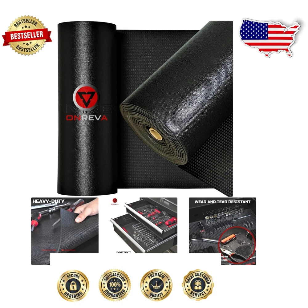 Product Dimensions: 264"l X 30"w Number of Items: 1 Unit Count: 55.0 Square Feet UPC: Does Not Apply Color: Black Recommended Uses For Product: Drawer Is Stain Resistant: Yes Special Feature: Non-slip Features: Water Resistant, Heavy Duty, Anti-Slip, Easy to Cut, Durable, Quality Material, Stain Resistant, Non-Slip Surface, Heat Resistant Item Diameter: 30 inch Finish: Matte gtin13: Does Not Apply Brand: Unbranded Type: Tool Box Number of Drawers: 0 Material: Rubber Product Care Instructions: Wipe With Damp Cloth Size: Large Item Weight: 11.97 lb Theme: Solid Capacity: 55.0 square feet Number Of Pieces: 1