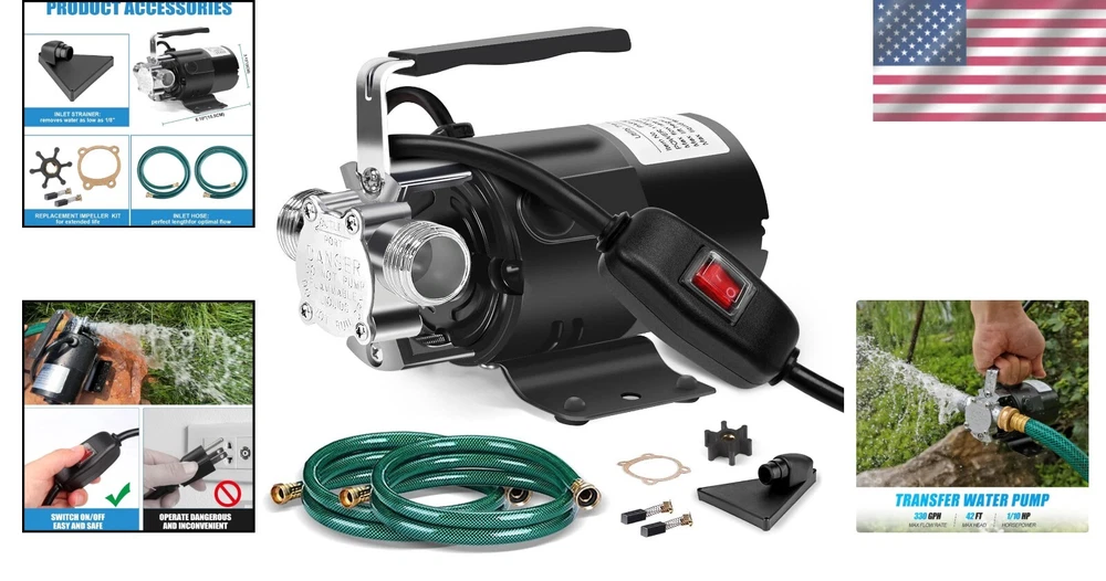 Durable Electric Utility Pump with 2 Water Hoses - Perfect for Pools & Aquariums ‹ › ‹ › ‹ › ‹ › ‹ › ‹ › ‹ › ‹ › Durable Electric Utility Pump with 2 Water Hoses Perfect for Pools & Aquariums Powerful Water Transfer Pump: 115V AC / 60 HZ, 1/10 HP, this portable transfer pump can transfer water up to 330 gallons per hour (5.5 gallons per minute). Easily lifts water over 42 ft , making it suitable for a variety of applications. Durability and Premium Quality: Constructed from heavy-duty metal , ensuring it outlasts plastic counterparts. Features a premium copper wire motor for ultimate performance and corrosion resistance through its zinc alloy pump volute. Designed for a longer service life. Safe & Convenient Operation: Equipped with a waterproof built-in switch for easy on/off operation. Comes with two 6.4 ft extra long power cords , enhancing safety and convenience. Self-priming and whispers quietly while running. Included 2* 6 FT Water Hoses: This utility transfer pump includes replaceable 6 ft suction hoses , meeting all your inlet and outlet needs. Includes a water suction strainer attachment to effectively remove water down to 1/8 inch of the surface. Wide Applications: Versatile in pumping clean water from pools, fish ponds, boats, and water heaters. Ideal for kitchens, bathrooms, camping adventures, and agricultural irrigation. Important Note: To ensure optimal operation, please add water to both the inlet and outlet before initial use to prevent running dry. For enhanced lubrication, adding edible oil is recommended. Allow more than 30 seconds for a smooth water flow. Why Choose Our Electric Utility Pump? Don’t compromise on quality when it comes to water transfer. Our Durable Electric Utility Pump is designed with superior materials and safety features, ensuring efficient performance while keeping your surroundings safe. With its impressive capacity and versatility, this pump is an invaluable addition for anyone needing reliable water transfer. Invest in reliability and efficiency - choose our utility pump for your aquatics and other clean water needs! Shipping Free & Fast Shipping - We offer free shipping to most of the USA with a normal delivery time of 3-7 days. However, due to the current situation, additional delivery time (up to 3 weeks) may be required for some items. Alternative Carriers - We may use alternative carriers (e.g. USPS, FedEx, UPS, etc.) to ensure your package arrives safely and on time. Due to the use of multiple carriers, we are unable to provide a tracking number automatically. Handling Time - Orders are processed and shipped within 1-2 business days of receiving cleared payment. Shipping Restrictions - Shipping to Alaska, Hawaii, Puerto Rico, Guam, and other US territories may incur shipping charges or delivery restrictions. Please contact us before ordering, or your order can be refunded/cancelled. State Restrictions - There may be restrictions based on your state of purchase. For example, certain items may not be shipped to California due to state regulations. Contact for Tracking Updates - If you require tracking updates or have any concerns about the delivery of your order, please feel free to contact us, and we will be happy to assist you. Return 30-Day Hassle-Free Returns - We want you to be completely satisfied with your purchase. If you are not, you can return the item within 30 days of receiving it for a full refund or exchange. Easy Return Process - To start a return, simply contact us and we will provide you with a prepaid return shipping label and detailed instructions. Restocking Fee - There are no restocking fees for returns. However, the buyer is responsible for return shipping costs if the return is not due to a seller's error. Refund Processing Time - Refunds will be processed within 5 business days of receiving the returned item in its original condition. Payment We accept all major credit cards, PayPal, and Apple Pay for your convenience. Your payment information is secure and encrypted to ensure a safe and seamless transaction. Please complete your payment within 3 days of purchase to avoid any delays in shipping. Feedback Your feedback is extremely important to us. We strive to provide the best products and customer service possible. If you are satisfied with your purchase, please take a moment to leave us a positive review. If you have any concerns or issues with your order, please contact us before leaving negative feedback. We are committed to resolving any problems and ensuring your satisfaction. Contact Us If you have any questions or concerns, please feel free to reach out to our customer support team. You can contact us through the eBay messaging system. We are available Monday to Friday, 9:00 am to 5:00 pm EST, and we will do our best to respond to your inquiry within 24 hours. Thank you for supporting our small family business! UPC: Not Set Model: Electric Water Transfer Pump Power: 115V Unit Quantity: 1/10 HP Features: Submersible,Portable,Easy to switch on/off,Waterproof built-in switch,Self-priming,Smooth running,Quiet operation,Corrosion resistance,Replaceable suction hoses Type: Utility Pump Brand: Unbranded Horse Power: 1/10 HP Maximum Working Pressure: n/a Item Width: Not Set Item Height: Not Set Item Length: Not Set Manufacturer Warranty: Not Set Installation: Universal Installation Item Weight: n/a Maximum Flow Rate: 5.5 gallons per minute Voltage: 115 volts Maximum Head Lift: 42 ft Country/Region of Manufacture: Not Set Maximum Working Temperature: n/a Minimum Working Temperature: n/a Item Diameter: n/a MPN: Not Set Unit Type: Unit