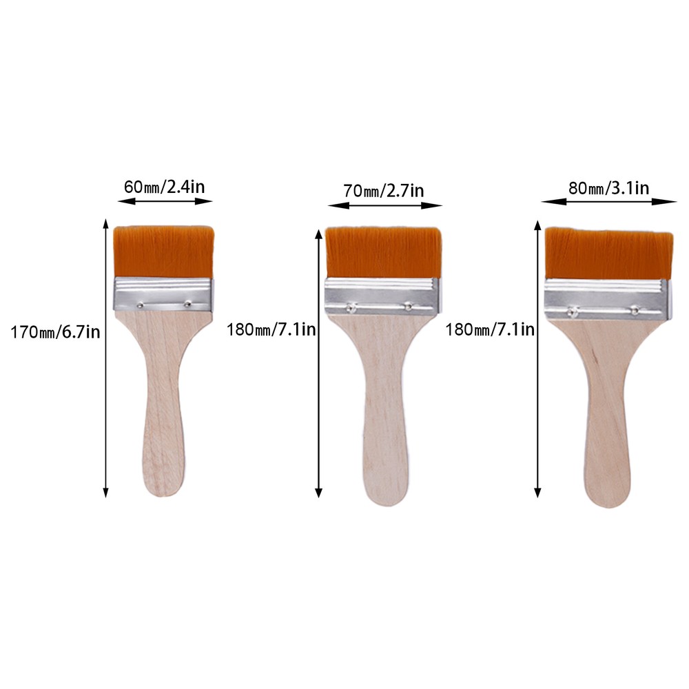 Description Are you troubled by the waste of a whole painting due to uneven application when painting? Or do you find yourself overwhelmed by the residue of bristles after each painting? Then this set of six brushes made of highly flexible nylon is great for you, it has different specifications to meet your different needs. And it is finely crafted and not easy to lose bristles to meet your requirements. It is also the ideal gift for artists, painters, students, art craft enthusiasts, and DIY. Details Nylon Bristles: Their bristles are made of high-quality nylon, with good wear resistance and weather resistance, and can also remain stable in complex situations so that you can use them for a long time. Clearly Numbered: They are numbered on the handle, making it easy for you to pick and choose when you use them. Specification Type: Brush Color: Brown, Wood Color Material: Nylon No. 7 Bristle Length: 3cm/ 1.18in No. 7 Size: 15*3.9cm/ 5.91*1.54in No. 8 Bristle Length: 3cm/ 1.18in No. 8 Size: 15.7*4.5cm/ 6.18*1.77in No. 9 Bristle Length: 3cm/ 1.18in No. 9 Size: 16*5.5cm/ 6.3*2.17in No. 10 Bristle Length: 3.3cm/ 1.3in No. 10 Size: 17*6cm/ 6.69*2.36in No. 11 Bristle Length: 3.3cm/ 1.3in No. 11 Size: 18*7cm/ 7.09*2.76in No. 12 Bristle Length: 3.3cm/ 1.3in No. 12 Size: 18*8cm/ 7.09*3.15in Package Size: 19*9*8cm/ 7.48*3.54*3.15in Net Weight: 0.65kg/ 1.43lbs Notes Please wet the bristles before use to prevent the bristles from splitting or not being smooth. Please dry the cleaned brushes before storing them. Please do not expose them to high temperatures when cleaning or using them, as this will affect their effectiveness and longevity. Please allow the slight color difference caused by the shooting light and 1-3 cm error due to manual measurement, and make sure you do not mind before ordering. Complete Specifications: This set of brushes has six different bristle lengths and sizes. So you can choose the most suitable brush according to your needs. Evenly Brush: Their bristles are dense and soft, paint evenly without scratching the paint, so you have a better painting experience. And the nylon bristles have good adsorption, which can reduce a lot of trouble for your powder brushwork. Dense Bristles: These brushes have dense bristles, so when you use them to paint or clean your items, they'll save you time and effort and do the job! Highly-elastic Bristles: Their bristles are both flexible and soft, making them less prone to deformation and leaving you with fewer brush marks on the painted surface. Fine Workmanship: They have a strong interface with neat bristles and riveted fastening so that they won't shed bristles. Comfortable Grip: The flat and smooth nylon handle is curved to fit well with your hand and allows you to use them for a long time with great comfort. Compact and Portable: They are small, lightweight and can be stored in a small storage bag for easy portability. Recyclable Use: These brushes are reusable after cleaning, saving you money.