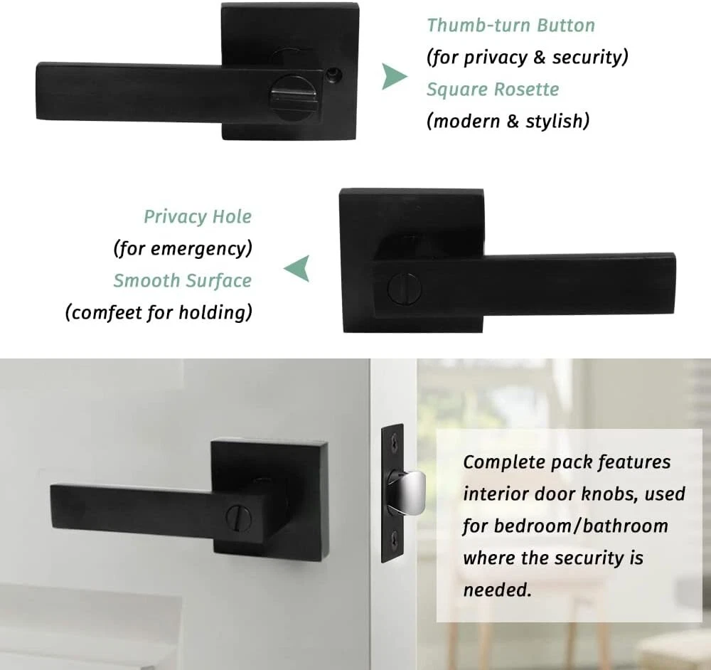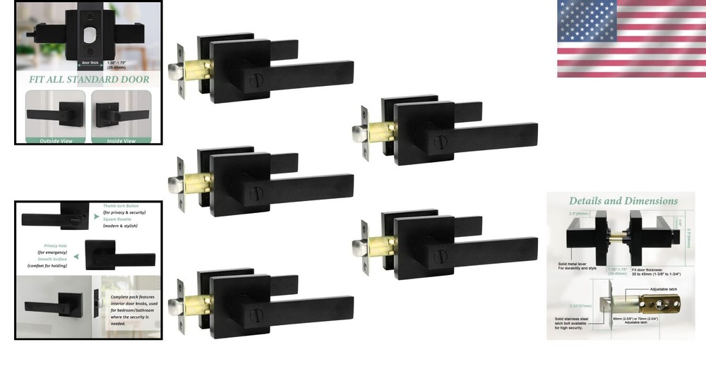 Durable Matte Black Privacy Door Handles - Keyless & Reversible Design, 5 Pack ‹ › ‹ › ‹ › ‹ › ‹ › ‹ › ‹ › ‹ › ‹ › ‹ › Durable Matte Black Privacy Door Handles - Keyless & Reversible Design, 5 Pack Elevate Your Space with Style Great Quality: Crafted from high-quality zinc alloy, these black door handles provide heavy-duty durability for daily use. Privacy Function: Features a thumb turn button for easy privacy locking; includes an emergency release option using a flat tool or coin, making them perfect for guest rooms, bedrooms, and bathrooms. Adjustable Latch: Universally adjustable latch fits 2-3/8" or 2-3/4" (60mm-70mm); designed to accommodate standard door thickness of 1-3/8" to 1-3/4" (35mm-45mm). Reversible for left or right-handed installation. Easy to Install: Each set comes complete with all accessories and installation instructions, allowing for a swift installation on any standard door. Contemporary Design: The square handles feature a minimalist aesthetic and a sleek matte black finish, adding a touch of elegance to both traditional and modern interiors. Why Choose Our Matte Black Privacy Door Handles? Are you in search of door handles that not only ensure functionality but also enhance the aesthetic appeal of your home? Look no further than our Durable Matte Black Privacy Door Handles. With a robust construction and ergonomic design, these handles represent the perfect marriage of style and security. Transform your living spaces with ease while enjoying the peace of mind that comes with quality craftsmanship. Upgrade your doors today with this exquisite 5-pack and experience the blend of elegance and practicality. Shipping Free & Fast Shipping - We offer free shipping to most of the USA with a normal delivery time of 3-7 days. However, due to the current situation, additional delivery time (up to 3 weeks) may be required for some items. Alternative Carriers - We may use alternative carriers (e.g. USPS, FedEx, UPS, etc.) to ensure your package arrives safely and on time. Due to the use of multiple carriers, we are unable to provide a tracking number automatically. Handling Time - Orders are processed and shipped within 1-2 business days of receiving cleared payment. Shipping Restrictions - Shipping to Alaska, Hawaii, Puerto Rico, Guam, and other US territories may incur shipping charges or delivery restrictions. Please contact us before ordering, or your order can be refunded/cancelled. State Restrictions - There may be restrictions based on your state of purchase. For example, certain items may not be shipped to California due to state regulations. Contact for Tracking Updates - If you require tracking updates or have any concerns about the delivery of your order, please feel free to contact us, and we will be happy to assist you. Return 30-Day Hassle-Free Returns - We want you to be completely satisfied with your purchase. If you are not, you can return the item within 30 days of receiving it for a full refund or exchange. Easy Return Process - To start a return, simply contact us and we will provide you with a prepaid return shipping label and detailed instructions. Restocking Fee - There are no restocking fees for returns. However, the buyer is responsible for return shipping costs if the return is not due to a seller's error. Refund Processing Time - Refunds will be processed within 5 business days of receiving the returned item in its original condition. Payment We accept all major credit cards, PayPal, and Apple Pay for your convenience. Your payment information is secure and encrypted to ensure a safe and seamless transaction. Please complete your payment within 3 days of purchase to avoid any delays in shipping. Feedback Your feedback is extremely important to us. We strive to provide the best products and customer service possible. If you are satisfied with your purchase, please take a moment to leave us a positive review. If you have any concerns or issues with your order, please contact us before leaving negative feedback. We are committed to resolving any problems and ensuring your satisfaction. Contact Us If you have any questions or concerns, please feel free to reach out to our customer support team. You can contact us through the eBay messaging system. We are available Monday to Friday, 9:00 am to 5:00 pm EST, and we will do our best to respond to your inquiry within 24 hours. Buy it now and enjoy a pleasant shopping experience! UPC: Not Set Model: Not Set Unit Quantity: 5 Material: Zinc,Zinc Alloy Suitable For: Bathroom Door,Bedroom Door,Interior Locking Doors,Guest Rooms Features: Easy to Install,Keyless,Sturdy Items Included: Knob,Latch,Lock Brand: Unbranded Type: Door Lever Color: Black Finish: Matte Item Height: Not Set Item Width: Not Set Item Length: Not Set Knob Diameter: 2.56 in MPN: Not Set Style: Modern Number in Pack: 5 Shape: Round Country/Region of Manufacture: Not Set Door Handing: Universal/Reversible Item Depth: 0.1 in Manufacturer Warranty: Not Set Item Weight: 9.47 lb Unit Type: lb Fixings Supplied: Not Set