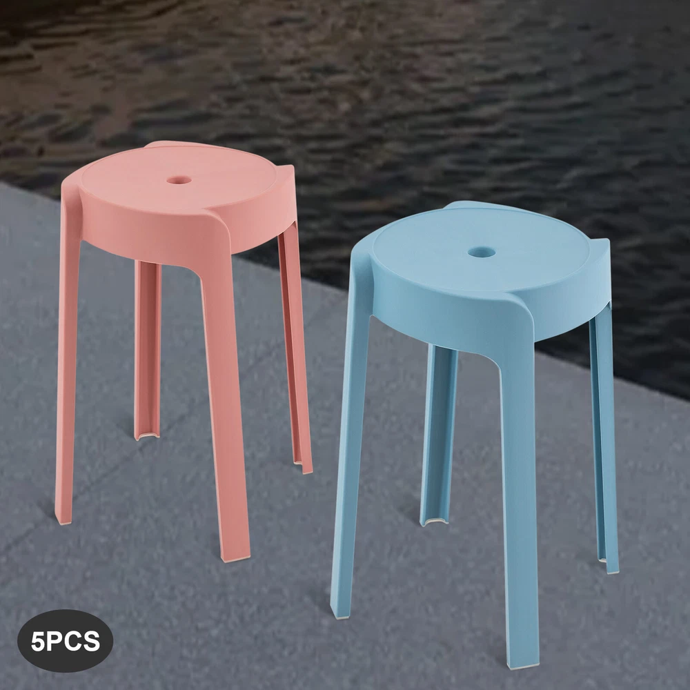 Plastic Stool Adult Thickened Bench Home Living Room Stacking Dining Table New Description This stackable stool is made of high-quality plastic, which is sturdy and not easily scratched. Its height and weight capacity can be used by many types of groups. The wide ergonomic stool surface is comfortable and smooth, which can reduce your tiredness for the day. The stool can be stacked and placed to save space. Key Features Sturdy and Durable: It is made of high-quality plastic through the one-piece injection molding process, which is scratch-resistant, wear-resistant, waterproof and moisture-resistant. Compared with most metal stools, it is not easy to rust and can keep as good as new after a long time. Comfortable Seating: It has an 18inch scientific height, which allows you to stretch your legs freely, and helps you to correct your sitting posture, suitable for people of different heights and common dining tables, desks, etc. The wide ergonomic 12.2-inch diameter stool surface is very smooth and can relieve the pressure on your hips so that you can sit for a long time without getting tired and improve your comfort. Thoughtful Design: The round hole in the center of the stool not only facilitates easy access and movement, but also promotes air circulation and water filtration, and can be used as a shower stool. The light weight of 2.2lbs for each enables you to easily move to where you want. Save Space: Its stackable design can help you save floor space. Place it on top of each other without clustering and make your home look stylish and sophisticated. Excellent Load Capacity: The one-piece injection molding process and reinforcing bar design make it sturdy and stable, with a load capacity of up to 165.35lbs, it can satisfy most people to use without worrying about damage. Beautiful Appearance: It has a beautiful and unique design of windmill curves. Multiple colors of stools are available to match different colors of furniture. The solid color stools throughout add an elegant tone to the home. Protective Packaging: To prevent the product from being damaged during transportation as much as possible, this product uses bubble bag that can effectively resist normal compression and drops. Aromatic Symbolism: Windmills are also known as the wheel of good fortune and the four seasons' peace talisman in traditional Chinese culture, representing joy and good fortune. The rotating windmill symbolizes that life is full of vitality and flows unceasingly. It can be used as a housewarming gift or holiday gift for your loved ones. Details Anti-slip Foot Mat: It effectively prevents slipping and tipping, and protects the floor, while guaranteeing that it will not make a harsh rubbing sound when moving the stool, giving you a comfortable and safe experience. Rounded Corner: The rounded corners of the stool are designed to prevent bumps and better protect you and your family. Application It is suitable for classrooms, living rooms, offices, and other places. At home, it can be used in the foyer to change shoes for use. Or put it in the bedroom to realize the office study multi-purpose. It can also be used with a desk or dresser or put in the kitchen. Specification Color: Multi-coloured Shape: L-Shaped Style: Modern Minimalist Martial: Plastic Process: Integrated Injection Molding Load Bearing: About 75kg/165.35lb Number of Pieces: 5 Height: 46cm/18inch Width: 31cm/12.2inch Package Size: 36*36*60cm/14.17*14.17*23.62inch Gross Weight: 5kg/11.02lbs Package Included 5* Stackable Stools Notes Please be careful to wipe with a damp cloth. Please allow the slight color difference caused by the shooting light and the 1-3cm error due to manual measurement, and make sure you do not mind before ordering. Payment Delivery details Terms of sales About us Contact us Payment We accept ebay payment 。 Fees such as import duties, taxes are not included in the item price or shipping costs. These charges are the buyer's responsibility. Delivery details Shipping: 2-9 working days to: USA Terms of sales We maintain high standards of excellence and strive for hundred percent customer satisfaction. Feedback is very important to us. We hope that you contact us immediately before you give neutral or negative feedback, so that we can address your concerns. It is impossible to address issues if we do not know about them! About us Your satis faction is our ultimate goal. We work hard to earn your trust and future business. Our certified technicians have tested each item before shipping. The unit comes with 1 year limited warranty on all manufacturing defects. a) If you receive a defective item, you may return it or ask for a discount. Please contact us within 14 days after you receive the package. b) What you returned must be intact and in its original packaging as re? u. Customer is responsible for shipping costs of the returned item. c) We will cover the cost of shipping back t with the shipping rate indicated in the registration page. We will send you a new unit or refund the full payment you paid. Thank you. Contact us Business Hour Business Hour: Monday To Friday: 8:30 AM to 5:00 PM (Beijing China time) Due to time zones, our reply to your questions may not be immediately. But within above working time, we will reply your email within 24 hours. If it's non-workdays, please kindly be patient and wait till Monday. Please contact us with ebay message. Please feel free to contact us if you have any questions. Monday To Friday: 8:30 AM to 5:00 PM (Beijing China time) Due to time zones, our reply to your questions may not be immediately. But within above working time, we will reply your email within 24 hours. If it's non-workdays, please kindly be patient and wait till Monday. Please contact us with ebay message. Please feel free to contact us if you have any questions.