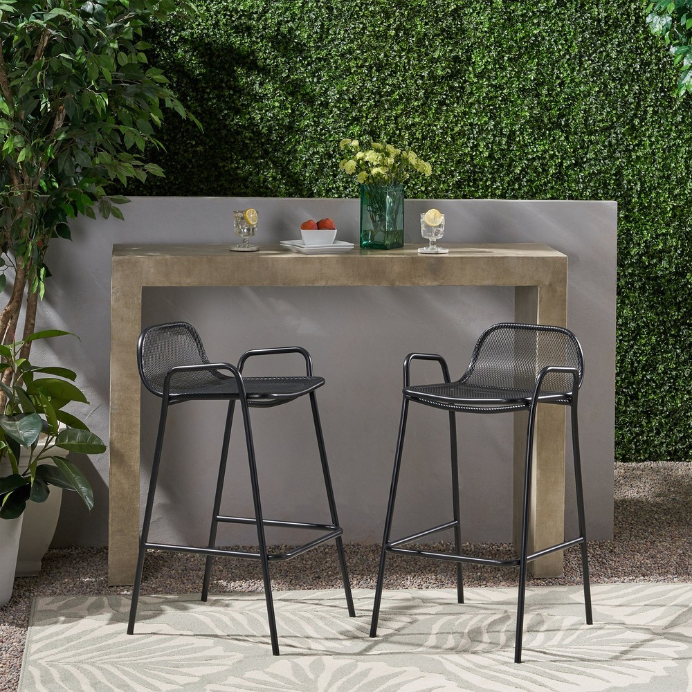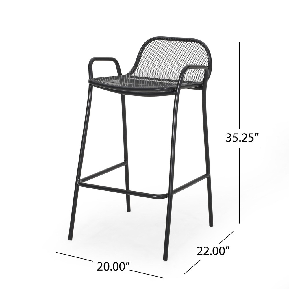 Specifications Place of Origin #originPlace# Main Color Matte Black Main Material Iron Dangerous Goods #dangerFlag# Dimensions & Weights Assembled Length (in.) 20.00 Assembled Width (in.) 22.00 Assembled Height (in.) 35.25 Weight (lbs) 19.40 Product Features MODERN DESIGN: With clean lines contrasted perfectly by rounded curves, our stools are the ideal modern accessory for your outdoor space. Finished with a slim frame and mesh design, this barstool set not only has a sleek, minimalistic look but also provides a unique structure. IRON FRAME: Constructed of powder-coated iron, these barstools are made to be incredibly durable, ensuring that they will hold up under heavy use. Refined with a matte finish, these stools bring a smooth touch to your space, making it an understated yet chic addition to your home. MESH SEATING: This features seating constructed of mesh, making our stools both breathable and supportive. This open structure allows air to circulate and ventilates body heat on a hot day. BARSTOOL HEIGHT: Each stool has a seat height of 28.75 inches, making this perfect for an outdoor bar space or bistro set. ASSEMBLY REQUIRED: Some assembly is required for this barstool set. All of the instructions and tools needed for assembly are included. This comes as a set of two. Description Linda Modern Iron Barstool, Set of 2, Matte Black Pull up a stool to your outdoor bar and enjoy a chilled drink while enjoying the summer sun. Our set of barstools allows you to relax in your own backyard or patio space with mesh seating, allowing a refreshing experience for you and your guests. Made with powder-coated iron, the frame of these barstool provides assuring durability and a smooth, sleek look for your space. From bistro sets to outdoor bars, our set of barstools brings you a reliable place to unwind in the great outdoors. Includes: Two (2) Bar Stools Material: Iron Finish: Matte Black Hand-Crafted Details Assembly Required Dimensions: 20.00 inches deep x 22.00 inches wide x 35.25 inches high Seat Dimensions: 15.00 inches deep x 16.75 inches wide x 28.75 inches high