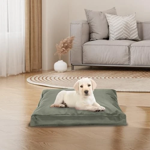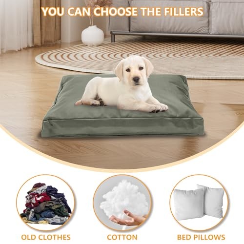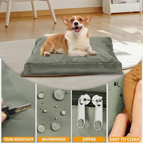Heavy Duty Waterproof Replacement Dog Bed Cover 36" L x 27" W x 4" H Removable Zippered Cover Grey Green Heavy Duty Waterproof Replacement Dog Bed Cover 36" L x 27" W x 4" H Removable Zippered Cover Grey Green Dog bed cover size: 36"L x 27"W x 4"H (91x68x10 cm). Made of heavy-duty 420D Oxford fabric with waterproof backing. Tear-resistant double needle sewing for enhanced durability. Compatible with various fillings like old clothes, shredded foam, and blankets. Easy to clean with an integral zip; simply wipe or rinse. Includes a cover storage bag for convenient storage.