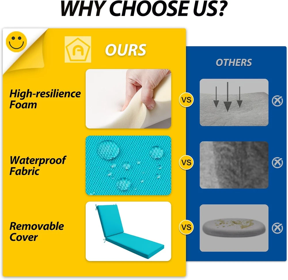 Store New Arrivals Add to Favorite View Feedback Contact Outdoor Chaise Lounge Cushions for Patio Furniture Lounge Chairs, Waterproof Fabric, 74 X 23 X 3 Inch, Turquoise Blue Description Unit Count 1.0 Count Number of Items 1 Color Turquoise Blue Pattern Plain Product Dimensions 74"L x 23"W Country of Origin China Shape Rectangular Item Weight 9.02 pounds Pillow Type Furniture Cushion Fill Material Foam Age Range (Description) Adult Size 1 Count-74 in L x 23 in W x 3 in T Special Feature Water-Resistant, Waterproof, Fade-Resistant, UV-Resistant Cover Material Polyester About Size: Seat: 46L×23W×3H inches, Backrest: 28L×23H×3T inches (dimensional tolerance: 1'' ). To get the right outdoor chaise lounge cushion, please measure the seat size of your outdoor furniture before ordering. Compressed and packed in a roll, the cushion foam inserts may come to you a bit bigger and thinner than their normal sizes after you unpack them. Please allow several days for them to rebound back or pluff them up faster by evenly moving a hair dryer around them for several minutes Waterproof and Removable Cover: Made of sturdy, breathable polyester fabric with a waterproof coating, the cushion cover is UV-protected and fade-resistant, providing you with a comfortable outdoor experience. The removable cover features a zipper for easy cleaning and replacement. The zippers are covered and invisible, so you don't need to worry about them affecting the appearance or functionality Upgraded Cushion Foam: The thicker powder-free high-resilience foam can quickly regain to its original shape after sitting for a long time and provide you with soft and comfortable using experience. This can not only effectively relieve the pressure on your body and enhance your comfort, but also make the chaise cushions more durable after long-term use Non-slip Ties and Piped Edge: The four non-slip ties can be fastened to your furniture to keep the outdoor cushion in place. Some seams are finished with piping, which reinforces the edges and makes the outdoor furniture cushion more stylish Wide Use & Some Tips : The outdoor lounge chair cushions can be used on your chaise lounges in various outside spaces like the pool, patio, balcony, deck, backyard and gazebo. Some tips: the foam inserts and the covers will be separately packed in bags and then put together in one box so please check carefully if they are all included in the box. Easy assembly will be required. If you need any help, please contact our customer service staff first Product Description AAAAAcessories cushions in different sizes and colors Add to Cart Add to Cart Add to Cart Add to Cart Add to Cart Add to Cart Add to Cart Customer Reviews 4.5 out of 5 stars 243 4.4 out of 5 stars 671 4.7 out of 5 stars 26 4.6 out of 5 stars 75 4.5 out of 5 stars 306 4.5 out of 5 stars 58 4.7 out of 5 stars 21 Price $84.99 $ 84 . 99 $114.99 $ 114 . 99 $128.99 $ 128 . 99 $118.99 $ 118 . 99 $49.99 $ 49 . 99 $49.99 $ 49 . 99 $44.99 $ 44 . 99 Size 72 x 21 x 3 24 x 24 x 5 + 24 x 19 24 x 24 x 5 + 24 x 19 x 4 25.5 x 25.5 x 5 + 25.5 x 13.5 19 x 19 x 3 20 x 20 x 3 + 20 x 24 x 3 42 x 18 x 3 Waterproof ✔ ✔ ✔ ✔ ✔ ✔ ✔ Fadeproof ✔ ✔ ✔ ✔ ✔ ✔ ✔ Ties 4 Ties 2 Ties 2 Ties 2 Removable Ties 2 Removable Ties 4 Ties 2 Ties Rolled edge ✔ ✔ ✔ ✔ ✘ ✘ ✔ Non-slip Bottom ✘ ✘ ✘ ✔ ✔ ✔ ✘ ABOUT US We offer the best prices around on high quality products. Our E-store includes media such as books, movies, music and games while offering electronics, toys, sporting apparel, clothing, tools, general home, garden items and more. SHIPPING We are always working hard to ensure your package arrives as soon as possible. Please understand that some factors like weather, high postal traffic, and the performance of shipping companies are outside of our control. We offer free shipping to the lower 48 states and ship within 2 business days of payment, usually sooner. We do not accept P.O. Boxes. Please provide a physical address. For shipping outside of the continental USA, we only use eBay's Global Shipping Program.The item is shipped to KY and then sent to the rest of the world. International customers are responsible for all duties and taxes. Continue to check out in order to calculate costs for shipping the item to your country. Messages regarding eBay's Global Shipping Program MUST be directed at eBay EXCLUSIVELY. RETURNS We offer a 30-Day Return Policy on items which you are not completely satisfied with. You have the option for a full-refund or an exchange of the item. No returns are available on items shipped outside of the USA. PAYMENT We accept PayPal. CONTACT US This page content is yet to come Please ad us to your favorite seller and visit again later Thank You CUSTOMER SATISFACTION We try our very best to make sure every customer is completely satisfied. If there's a problem, message us! We're happy to help. WE ACCEPT Copyright © 2021 AutoDS. | All Rights Reserved