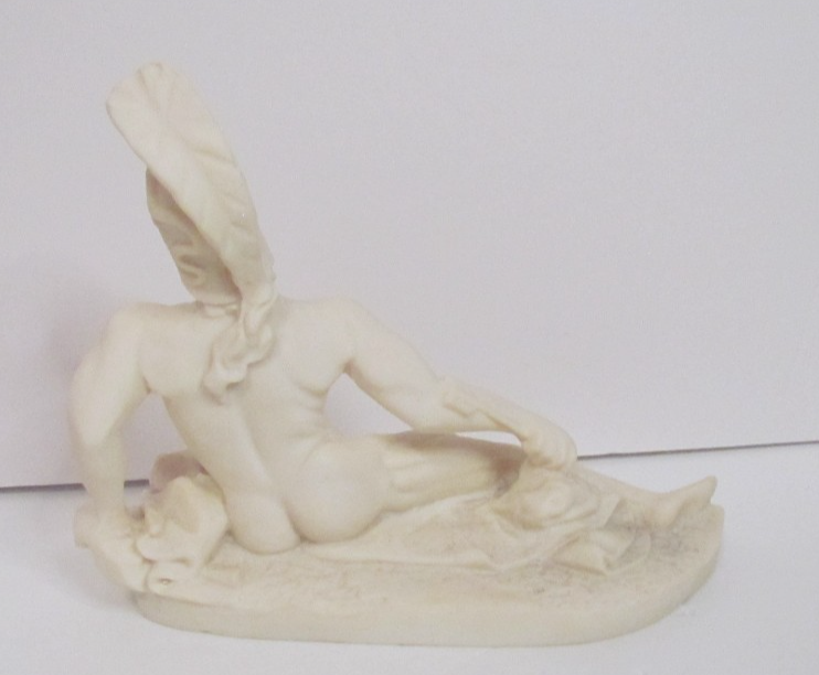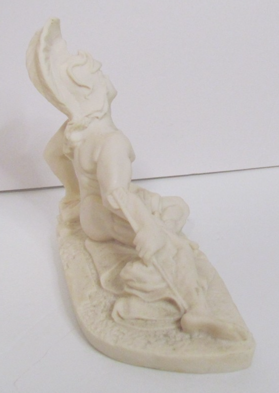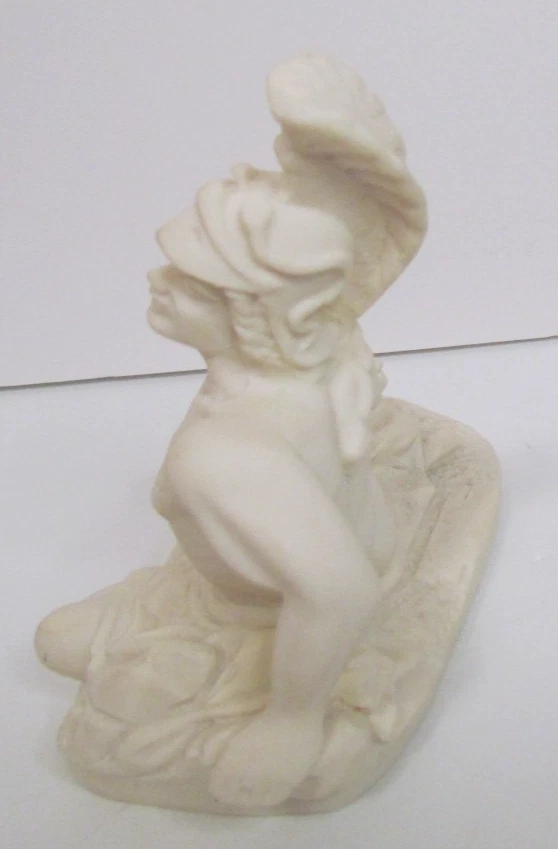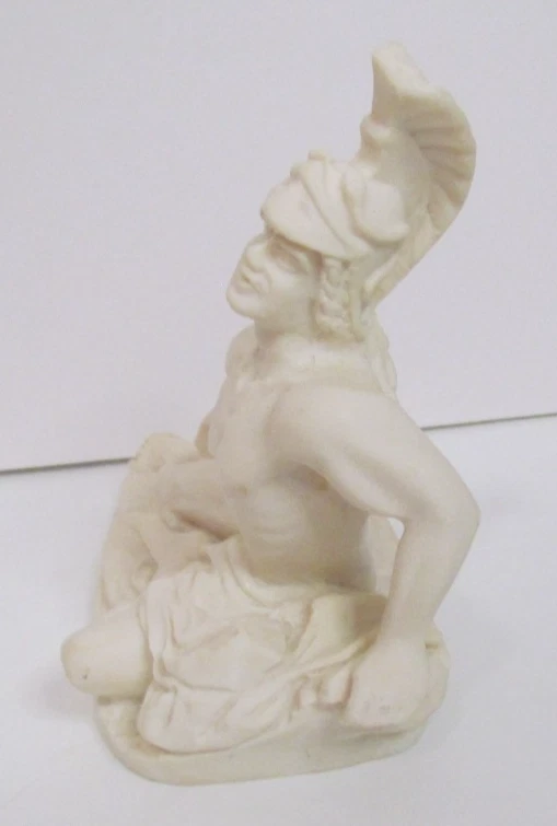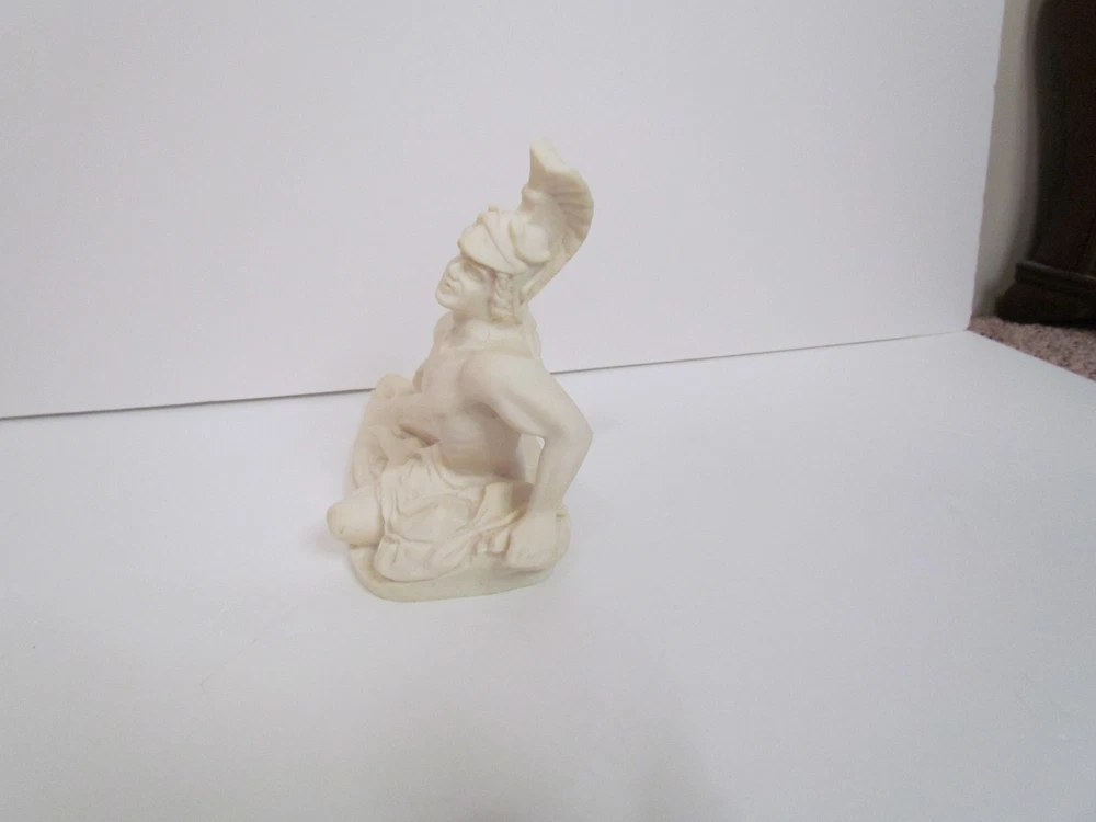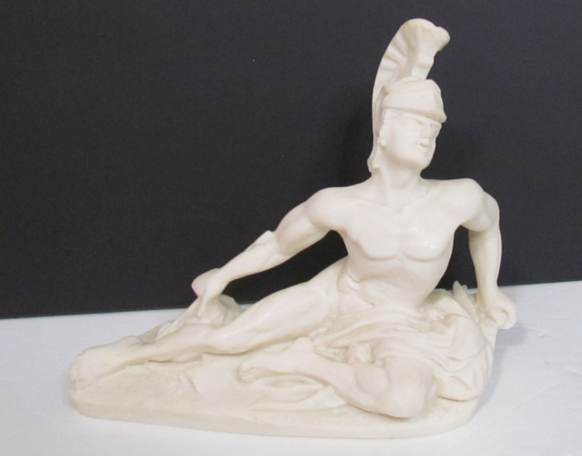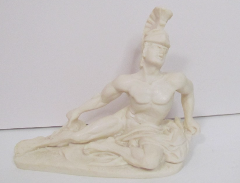 Dying Achilles Trojan War Hero in Cast Alabaster Beige Figure, bought in Greece on a friend's honeymoon - The original sculpture was made by Ernst Herter, a German Sculptor in 1884. The original sculpture is located in the Achilleion Palace in Corfu. This smaller replicaa is made from cast alabaster, a material combining natural crushed alabaster stone with resin, There is a very small chip in the back of the sculpture at the base. The 2nd to last photo shows it. The very slight chip in now affects the balance of the sculpture, Kept in a smoke-free, animal-free home