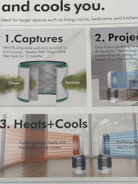 The Dyson DY-31138301 HP01 Pure Hot and Cool Purifying Heater Fan is a sleek and efficient tower-style air purifier that combines heating and cooling capabilities with a HEPA-Type filtration system. The white and stainless steel design, along with the remote control and digital control style, make it both stylish and easy to use. This model, from the trusted brand Dyson, is designed to capture chemicals and improve indoor air quality, making it a valuable addition to any home or garden space. With its compact dimensions and innovative features, this purifying heater fan is a must-have for those looking to maintain a healthy environment.