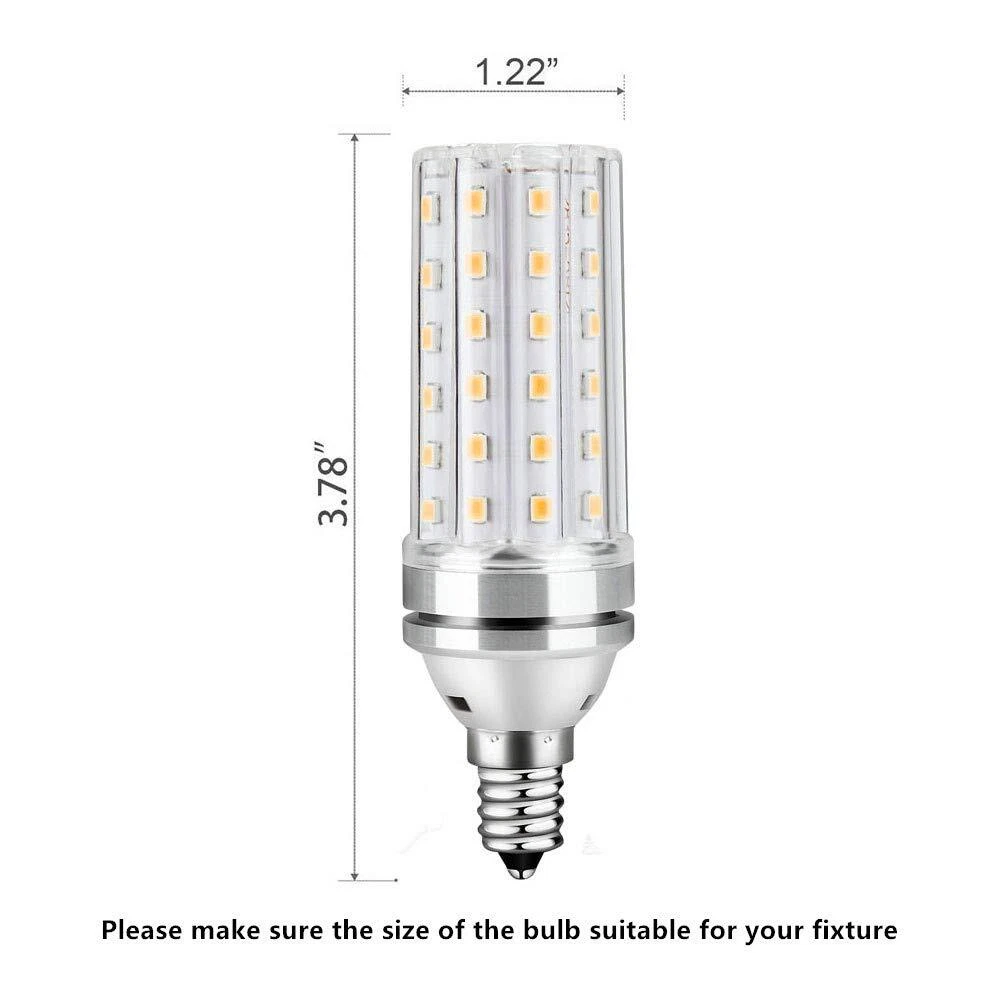 Notes: 1.Switch off the power before replacing the lamp. 2.Keep away from direct sunshine and too high temperature. 3.If you have any doubt about the installation or use of this product, please consult a competent electrician. Shell Material: Aluminum+PC Lampshade Color Temperature:Daylight White 6000K Package: 4 Packs of LED E12 Bulbs from ➥High Quality Led bulbs:reduce replacing frequency and save over 88% on electricity bill of lightning in a long time Excellent ➥ Excellent replacement incandescent bulb:e12 led bulbs light 6000k and 1500 lumen more pleasantly daylight white ➥Corn Shape Design:360-degree nature light,Non-flickering offers comfortable and relaxing light for your eyes ➥Top flame-resistant PC material:less heat generation, protect you from the situation that the bulb breaking out of nowhere ➥Warranty:This E12 LED bulb is not recommended for use in ceiling fan lights and dimming devices for the motor will interfere with the light bulbs.2-year free replacement policy for any purchase.Not for outdoors.