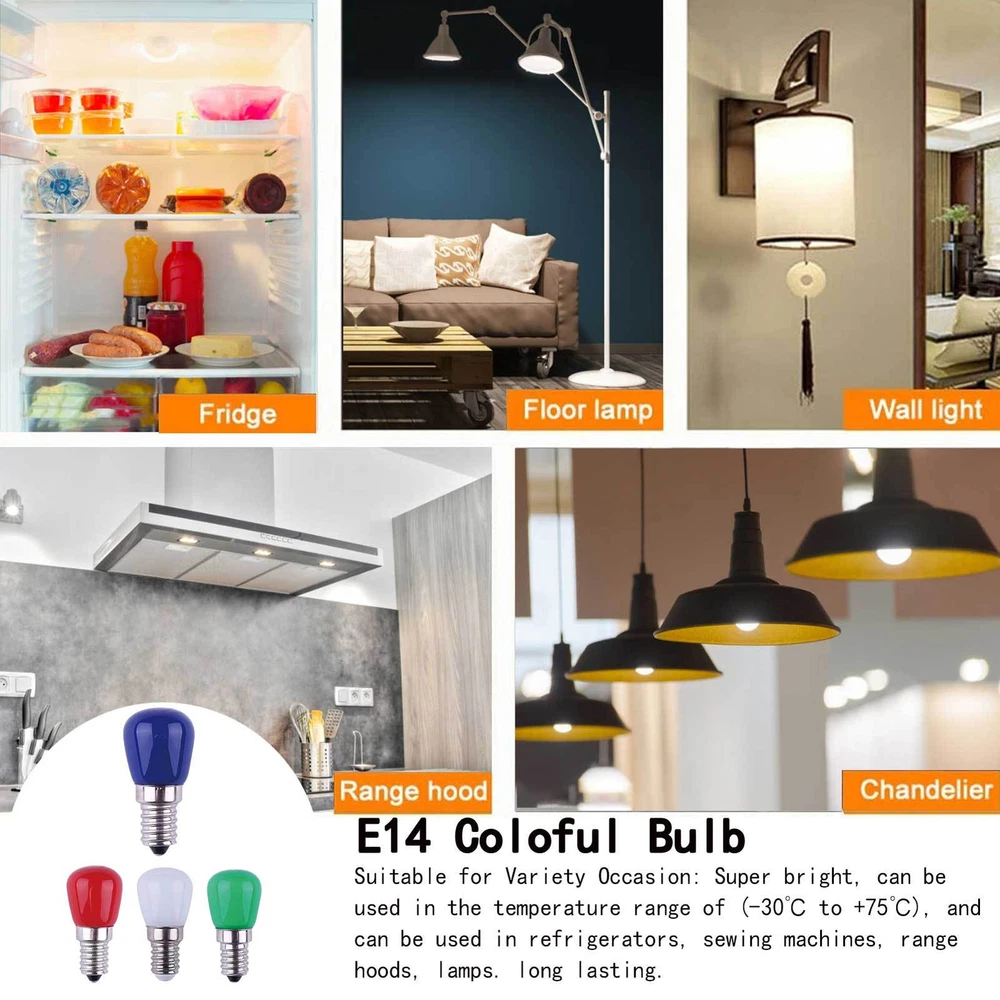 E14 LED Light Bulb Mini 3W Refrigerator Light Bedroom Bathroom Living Room Decor Description: E14 Light Bulb has a beautiful and exquisite appearance, which is an ideal festival and party decoration lighting. 1. 360-degree lighting and uniform color. 2. Easy to install. 3. Has a wide application range and a fast response speed. 4. Super bright and long-lasting. 5. Can be used in refrigerators, sewing machines, range hoods, and lamps. Specification: Name: E14 LED Light Bulb Model: E14 ST26-2835 Size: about 23*51mm/0.91*2.01in Lamp beads: 2835SMD*6PCS Voltage: AC220-240V Power: 3W Luminous flux: 270LM Luminous color: white light/red light/green light/blue light Packaging: neutral color box packaging Packing List: 1*Bulb Payment should be completed within 2 days after auction closed, or unpaid dispute will be filed for an closing auction. An unpaid case will be filled after 4 days ● We strive for 100% customer satisfaction ! ● Positive Feedback is very important to us. ● We hope that you contact us immediately BEFORE you give us neutral or negative feedback, so that we can satisfactorily address your concerns. ● We promise to offer the lowest price and high quality produce. Our working time: Monday to Friday (9:00 am to 18:00pm)(Beijing Time) Saturday (9:00 am to 12:00am),except International Holiday. Dear buyers : ● Welcome to my store ! ● Your satisfaction is our top goal,we appreciate your patronizing. ● If you have any questions, please contact us before leave negative or neutral feedback, we will try our best to solve the issue to your satisfaction, thanks ! ● If you are satisfied with our service, please rate the details of the transaction (Detailed Seller Ratings) on eBay. ● Please always talk to us via ebay Message . ● We appreciate your business and look forward to growing our e-Bay sales with satisfied customers.
