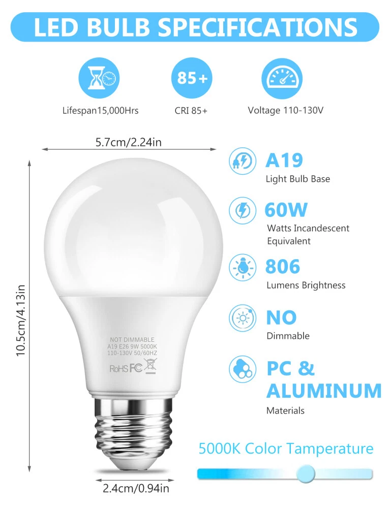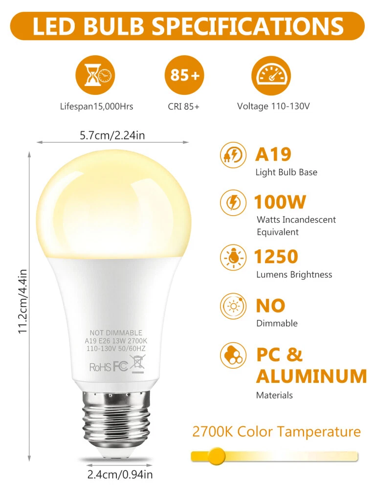 Tani Logics eBay Listing Template Welcome to Our Official eBay Store Welcome Fast & Secure Delivery 30 Days Money Back Guarantee Best Price Guarantee OUR MENU Visit Our Shop Add To Saved Sellers Join Our Newsletter Contact Us Visit Our Shop Add To Saved Sellers Join Our Newsletter Contact Us E26 LED Light Bulbs 60W 100W Watt Equivalent A19 5000K Daylight 2700K Warm White Item Decription Features: ➤ GREAT VALUE & SOFT LIGHT: This 9W/13W E26 screw bulb features 806/1250 lumens of light output, giving off 2700K Warm White(5000K Daylight). With CRI85+, they display vivid and natural colour to create extra warm light effect. ➤ ENERGY SAVING & LONG LIFE: The 6/12-pack A19 LED light bulbs can last for 15000 hours. 9W is equivalent to 60W(13W is equivalent to 100W), saving up to 90% energy and your electricity bill. Release the same brightness but cost less than your old incandescent bulbs. ➤ WIDE APPLICATION: Standard E26 screw base, easy to screw in and use. With 2700K warm white light or 5000K daylight, perfectly and widely used in the home indoor lighting, hotel, meeting room, offices, hospital, schools, factories and etc. No buzzing, no humming, and no flickering. ➤ EASY INSTALLATION: High quality LED globe bulb features superior and durable materials. Standard E26 screw base. 110-130V. Instant on, no warm-up time, non-dimmable. 180 degree beam angle. Install these bulbs into all E26 screw base fixtures directly. No buzzing, no humming, and no flickering. ➤ TOP QUALITY & SAFETY: All of A19 LED light bulbs are certified by ERP, RoHS and CE to guarantee world-class quality. A+ Energy Class Rated. Free of UV, lead and mercury. Specification: Lumens: 9W (806lm) /13W(1250lm) 15000 Hours Lifespan A19 GLS shape: E26 Screw, AC 110-130V 50-60Hz Available in Packs of 6,12 Bulbs Warm White & Daylight Replacement for Incandescent bulb No lead or mercury. 90% saving in running costs Ideal for general purpose room lighting Size of bulb 9W(57mm x 105mm)/13W(57mm x 112mm) Wide beam angle of 180° with a Frosted Cover Package: 6/12 x LED Light Bulbs Payment We accept PayPal Only! Import duties, value added taxes and any other charges are not included, Buyers are responsible for import duties, custom fees and taxes, if any. Please check with your country's custom office to determine the additional costs impose on the item prior to buying. We are absolutely NOT responsible for any import tax or Customs duty. Shipping Item will be shipped within 1-2 working day of payment cleared. All items will be checked strictly before shipping and it will be shipped to your PayPal address. Estimated delivery time is 4-8 working days (Not including weekend or public holidays) Delivery times may vary particularly during peak periods or unexpected weather conditions. In event of a very unlikely slight delay, your patience would be highly appreciated. Return Your satisfaction is our main concern, so we try ensure your order is perfect in every way. However, things can occasionally go wrong and you wish return any item bought from us within 30 days of receipt for a refund or have the item exchanged. This can be for any of the following reasons - You need to exchange for a different item. You simply don't like your item. The wrong item was sent. The order was faulty or damaged. In the result of you wanting to return an item, you have 30 days to do so, in your return please include reason and action you would like to be taken. The buyer is responsible for the return postage, and if an exchange is required then extra postage cost will need to be paid. In the rare case of a faulty item or wrong item received then please get in contact with our customer service team and we will get the problem resolved as quickly as we can. Copyright © 2017. All rights reserved.