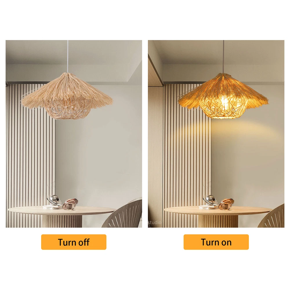 Application With a lighting area of 215.28-322.92 ft², it is suitable for flat and sloping ceilings in kitchens, living rooms, bedrooms, balconies, bars, aisles, foyers, hotels, restaurants, corridors, cafes, children's rooms, libraries, basements, clubs, and other indoor places. Specification Material: Rattan, Iron Process: Hand-Woven Color: Wood Color Style: Bohemian Assembly Required: Yes Indoor/Outdoor Usage: Indoor Mounting Type: Ceiling Mount Efficiency: E Light Source: 1* E26 Bulb(Not Included) Max. Bulb Power: 60W Voltage: 110V Lighting Area: 20-30m²/ 215.28-322.92 ft² Base Diameter: 12cm/ 4.72in Package Included 1* Chandelier All Accessories for Installation E26 Wicker Rattan Shade Pendant Light Hand-Woven Farmhouse Ceiling Lamp Fixture Description This chandelier will not only bring light and warmth to your life but also add interest to your room. The hand-woven look complements the theme of the room and adds a beautiful visual effect to the room wherever it is placed. In addition, you can also adjust its height according to your actual needs and preferences. It is not only a light but also a beautiful decorative piece. Key Features Sturdy and Durable: This product is made of high-quality rattan and iron with a hand-woven process, which is environmentally friendly, non-toxic , stable, and durable. Unique Appearance: The hand-woven lampshade is simple in design and novel in appearance, and the light is projected on the ceiling through the lampshade to form a very beautiful pattern, making your room more romantic. Adjustable Height: You can adjust the height of the chandelier by adjusting the length of the hanging wire ( 3.94-39.37in ) for different ceiling heights. Thoughtful Design: The semi-open shade not only allows light to diffuse and illuminate the space but also makes it easy to change the bulb. Meet Your Needs: Our product is available for dimmable bulbs(not included), and you can adjust the color of the light source to suit your needs. Easy to Install: With a simple structure and complete set of accessories, all you need to do is finish assembling the chandelier, then connect the pre-wired wires on the ceiling and screw the E26 bulb( not included ) into the lamp holder. Ideal Gift: This product is stylish and high-quality and can be used as an ideal housewarming, birthday, and holiday gift for parents, friends, and loved ones. Good Customer Service: We stand behind all our guests and look forward to assisting you with your purchase. It is our pleasure to answer your confusion and questions. The end of the story between us is not "we sell and you buy". Details E26 Lamp Head: The standard E26 lamp head is suitable for incandescent, halogen, LED bulbs, etc. for easy replacement. Solid Base: The large round base ( diameter: 4.72 in ) increases stress area, and can make the item fixed firm without falling easily. Application With a lighting area of 215.28-322.92 ft², it is suitable for flat and sloping ceilings in kitchens, living rooms, bedrooms, balconies, bars, aisles, foyers, hotels, restaurants, corridors, cafes, children's rooms, libraries, basements, clubs, and other indoor places. Specification Material: Rattan, Iron Process: Hand-Woven Color: Wood Color Style: Bohemian Assembly Required: Yes Indoor/Outdoor Usage: Indoor Mounting Type: Ceiling Mount Efficiency: E Light Source: 1* E26 Bulb(Not Included) Max. Bulb Power: 60W Voltage: 110V Lighting Area: 20-30m²/ 215.28-322.92 ft² Base Diameter: 12cm/ 4.72in Hanging Wire Length: 100cm/ 39.3in Adjustable Height Range: 10-100cm/ 3.94-39.37in Lampshade Diameter: 42cm/ 16.53in Lampshade Opening Diameter: 12cm/ 4.72in Lampshade Height: 20cm/ 7.87in Package Included 1* Chandelier All Accessories for Installation Notes Please check the dimensions of the product before ordering to ensure it fits your home. Please make sure the power is cut off before installation. To ensure your safety, we recommend that two people install it together. Please install it by someone with an electrical license if necessary. Please wear electric insulation gloves (not included) and avoid scratching the surface of the item and the electric wire when installing. Please use it within the applicable voltage range and clean it regularly. Please cut off the power supply when you clean the item. Please wipe with a soft cotton cloth and do not use household cleaning agents. Please use it in a dry environment. It is not suitable for outdoors and bathrooms. Please allow the slight color difference caused by the shooting light and the 1-3 cm error due to manual measurement, and make sure you do not mind before ordering. Payment Delivery details Terms of sales About us Contact us Payment We accept ebay payment 。 Fees such as import duties, taxes are not included in the item price or shipping costs. These charges are the buyer's responsibility. Delivery details Shipping: 2-9 working days to: USA Terms of sales We maintain high standards of excellence and strive for hundred percent customer satisfaction. Feedback is very important to us. We hope that you contact us immediately before you give neutral or negative feedback, so that we can address your concerns. It is impossible to address issues if we do not know about them! About us Your satis faction is our ultimate goal. We work hard to earn your trust and future business. Our certified technicians have tested each item before shipping. The unit comes with 1 year limited warranty on all manufacturing defects. a) If you receive a defective item, you may return it or ask for a discount. Please contact us within 14 days after you receive the package. b) What you returned must be intact and in its original packaging as re? u. Customer is responsible for shipping costs of the returned item. c) We will cover the cost of shipping back t with the shipping rate indicated in the registration page. We will send you a new unit or refund the full payment you paid. Thank you. Contact us Business Hour Business Hour: M