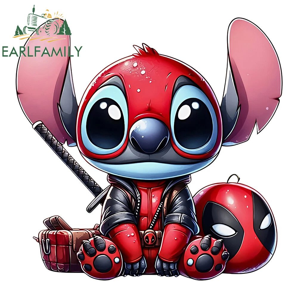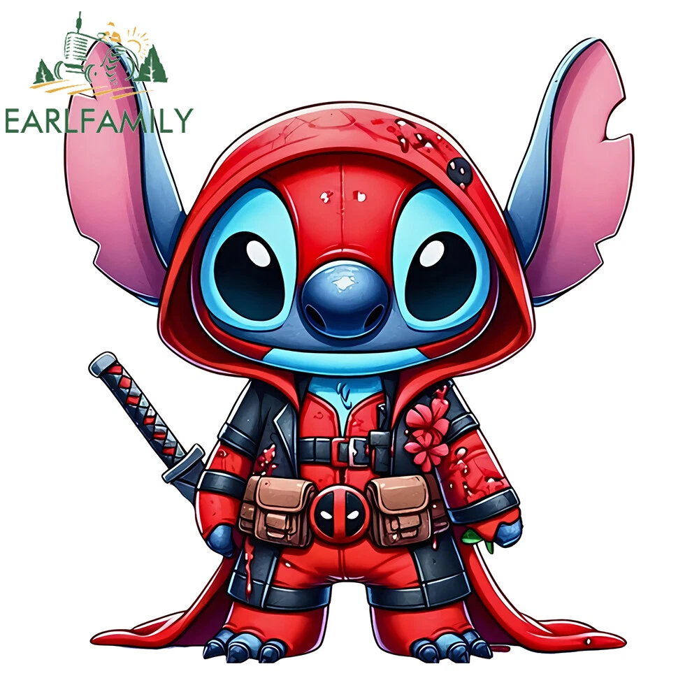 EARLFAMILY 5.1" Stitch Deadpool Creative Anime Car Sticker Auto Body Vinyl Decal