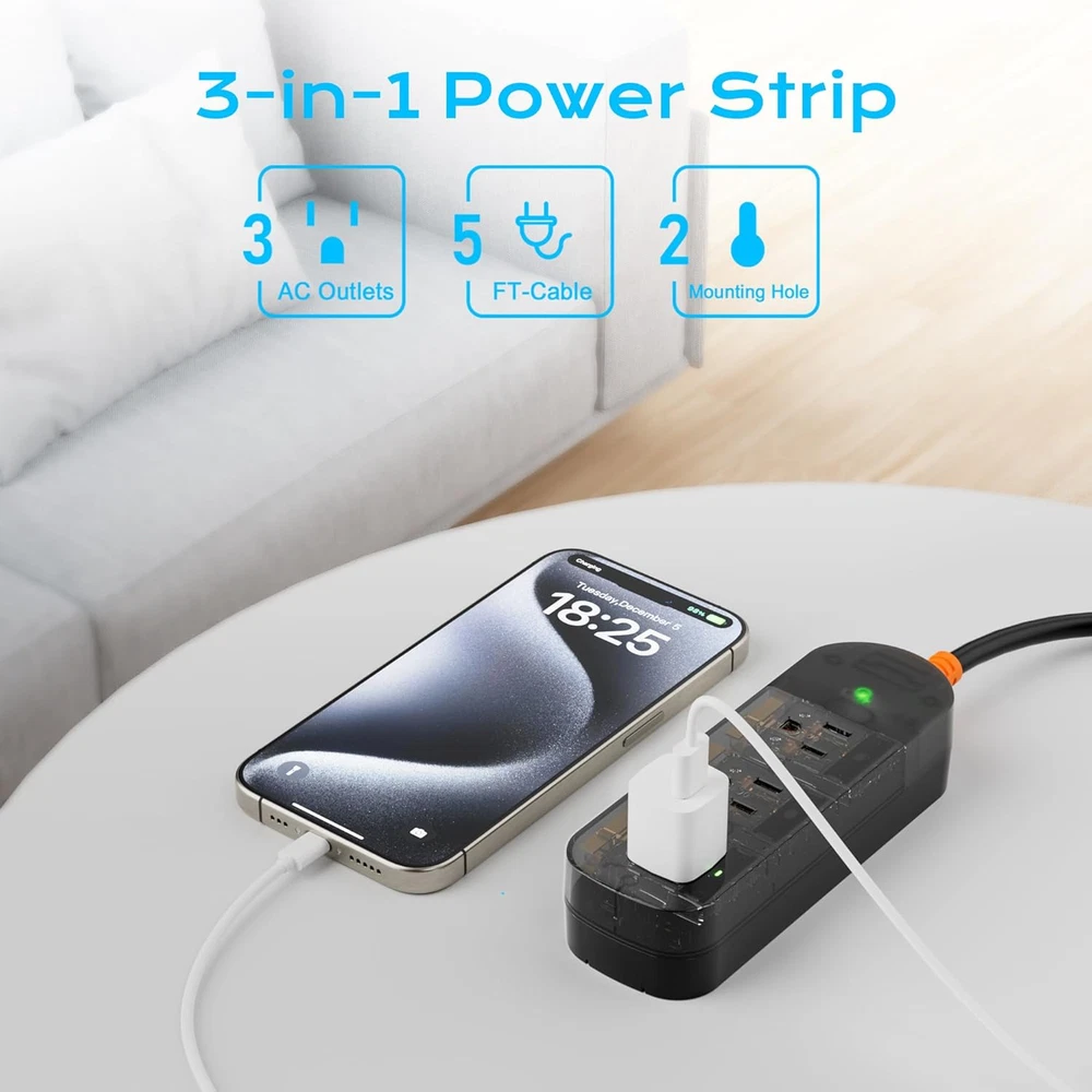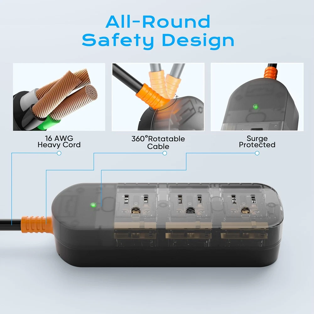 EIGSO Crystal Clear Power Strip, IPX6 Grade Waterproof Surge Protector with 3 AC Outlets, 5FT Heavy Duty Extension Cord for Indoor Outdoor, Crystal Black 【IPX6 Grade Waterproof】 It can work normally despite splash and rain. Note: It CANNOT be completely immersed in water. 【Anti-Electric Shock Socket】 Only standard plugs can match the socket and connect the circuit, which is extra protection for babies or pets. 【Lightning & Surge Protected】 EIGSO power strip provides 2000 Joules surge protection for your divices against lightnings and spikes. 【Exquisite Crystal Clear Casing】 The transparent casing distincts in appearance. And all internal modules are shown neat and solid. 【Indoor & Outdoor Versatile】 The exquisite appearance and weatherproof function make it a perfect tool for both indoor and outdoor use. Product Description Color Crystal Black Product Dimensions 5.91 x 1.97 x 1.18 inches Item Weight 12.7 ounces Total Power Outlets 3 Voltage 125 Volts Manufacturer EIGSO Special Feature Surge Protection, Mountable Brand EIGSO Size 5 FT Shipping Fast shipping is very important for us. Our standard US shipping service is FREE. Your order will be shipped within 2-3 business days upon full payment received. Your order will be delivered within 2-3 business days after the handling time. We only ship to the confirmed PayPal address. We reserve the right to cancel any order for any reason at any time. We are not responsible for undeliverable addresses. Returns and payment We offer a 30 days return policy from checkout winning date. We allow only PayPal as payment method FeedBack Your feedback very important to us, after you get your package and you are satisfied with our service please leave us positive feedback If you have any problem with your order / any questions please before leave any type of feedback For any questions, using eBay contact system Please visit our eBay store to check out other items for sale! Thank you for shopping at our store.