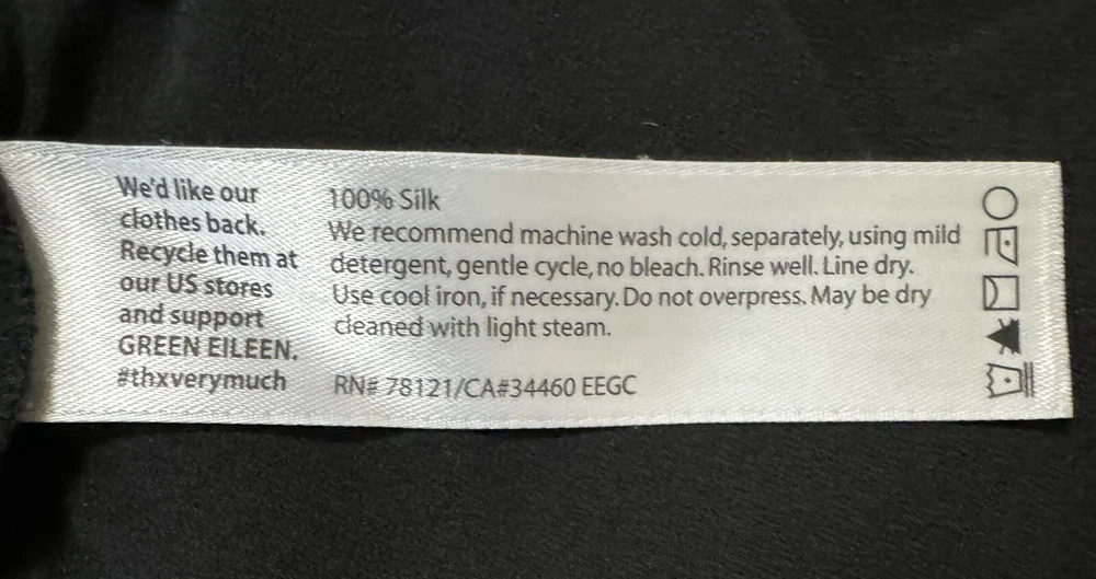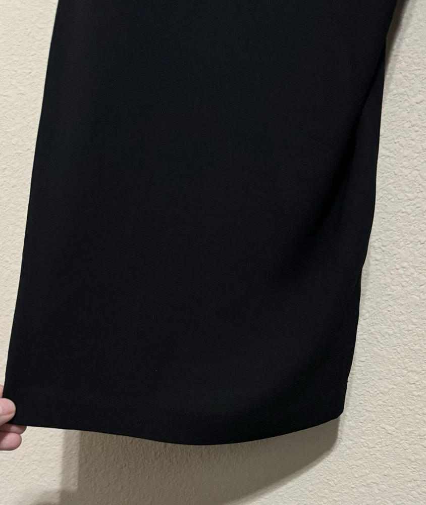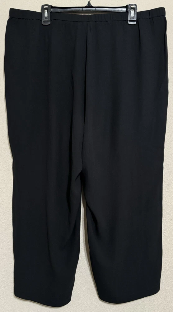 There is a very tiny pin hole from the security tag. It is located down low on left leg by the seam. Please see pic. Elevate your wardrobe with these stunning Eileen Fisher pants. Crafted from 100% silk crepe, these high-waisted capri pants feature a wide-leg design and a relaxed fit, making them perfect for any occasion. The black color and solid pattern make these pants versatile for any event, whether it be a holiday party, formal occasion, a wedding, or a casual outing. The pleated front and stretchy fabric add to the overall elegant look of the pants.
