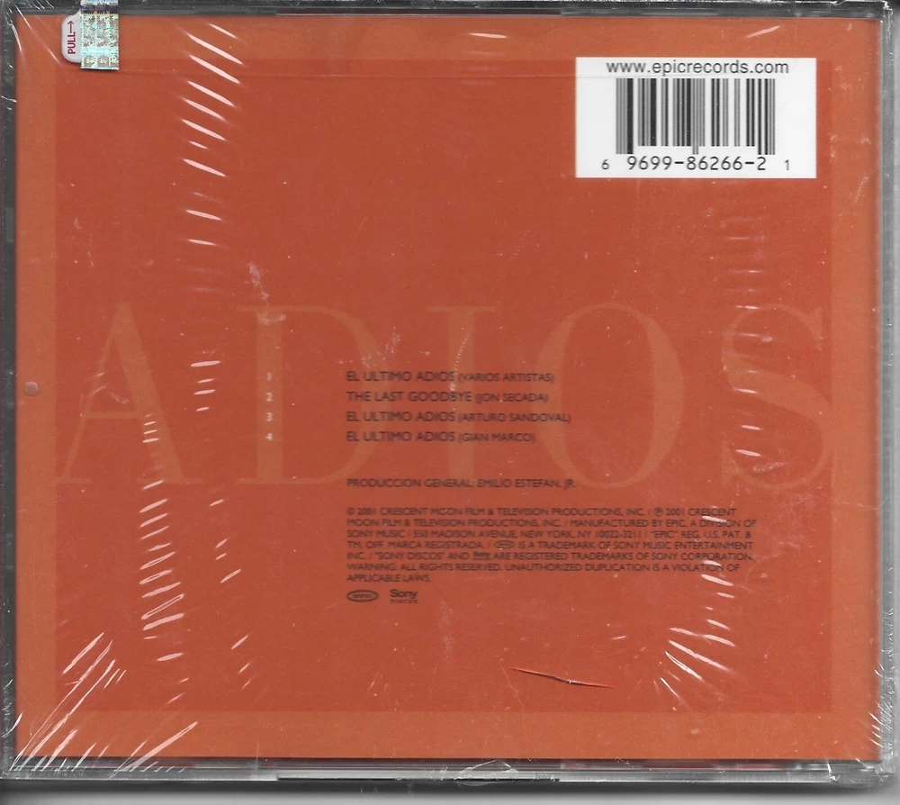 THE CD SINGLE YOU ARE BIDDING ON IS SEALED!! THE CASE IS CRACKED!!! EL ULTIMO ADIOS / THE LAST GOODBYE VARIOUS ARTISTS 1. Ricky Martin, Alejandro Sanz, Juan Luis Guerra y Gloria Estefan, Thalia*, Celia Cruz, Olga Tañón, Ricardo Montaner, Ana Gabriel, Jorge Hernandez*, Los Tigres Del Norte y Alicia Villareal*, Grupo Limite*, Alejandro Fernandez*, Carlos Vives, Jaci Velasquez, José José y Lucía Méndez (2), Marco Antonio Solis*, Jennifer Lopez, Chayanne y Gilberto Santa Rosa, Paulina Rubio, Shakira, Beto Cuevas / La Ley, Emmanuel, Ana Barbara*, Luis Fonsi, Carlos Ponce, Yuri (3) y Miguel Bosé, Jon Secada, José Feliciano, Wilkins, Gisselle, Melina Leon* y Ramiro, Christina Aguilera, Gian Marco, José Luis Rodríguez– El Último Adiós 2. Jon Secada– The Last Goodbye 3. Arturo Sandoval– El Último Adiós 4. Gian Marco– El Último Adiós THE SAME SHIPPING CHARGES APPLY TO THE BUY IT NOW PROGRAM!!! CHECK OUT MY OTHER AUCTIONS!! BUYER TO PAY SHIPPING & HANDLING OF $6.00 .....EACH ADDITIONAL CD IS $1.50... I ALSO OFFER FOR THE USA ONLY - A FLAT RATE SHIPPING PRICE FOR 10 - 40 CDS PAID FOR AT THE SAME TIME OF $16.00 THE TERMS OF THIS AUCTION IS STATED IN THIS DESCRIPTION...PAYMENT HAS TO BE MADE WITHIN 10 DAYS OF END OF AUCTION....IF PAYMENT IS NOT RECEIVED , I WILL FILE A NON PAYING BIDDER AND RELIST THE ITEM!!....IF YOU HAVE ANY QUESTIONS ABOUT ANYTHING INCLUDING THE SHIPPING...THEY MUST BE ASKED BEFORE THE END OF THE AUCTION...OTHERWISE THESE TERMS STAND FIRM!!!! IF YOU HAVE ANY QUESTIONS...PLEASE FEEL FREE TO EMAIL ME Please take a look at my other CD auctions, and any other purchases will only be an addition $1.50 each for shipping. PAYPAL CUSTOMERS: If you have won multiple auctions and are going to pay for them with Paypal: YOU MUST PAY FOR ALL OF THEM TOGETHER WITH ONE PAYPAL PAYMENT, NOT EACH ONE SEPARATELY. IF YOU PAY EACH ONE SEPARATELY, YOU WILL HAVE TO PAY THE $6.00 SHIPPING FEE PER ITEM - NOT THE REDUCED 1.50 THANKS FOR LOOKING AND HAPPY BIDDING!!!!