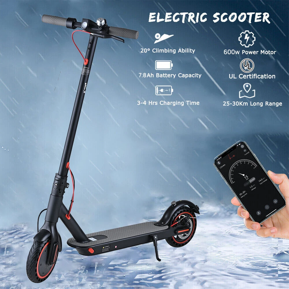 Note:The scooter is UL2272 certified. Description Introducing this electric scooter – a synergy of sleek design and advanced technology, and the highest quality components. This lightweight aluminium scooter has serious torsional strength for optimal performance.At the heart of the electric scooter is its quality 12.4Ah battery array in the stalk you can enjoy a serious range of up to 30km.The frame size makes it suitable for both adults and teens and the long deck contributes better handling.Speed, mode and charge level can all be monitored on the integrated backlit LED display. Furthermore, you can ride into the night thanks to the LED headlight. And when you’re done, the electric scooter can be folded in seconds. Features 600W motor provides stable and strong power allowing it to climb steep roads angled at 15°. 36V, 12.4Ah high-capacity lithium battery allows for a longer range and higher speed. 3 adjustable speed models to your own needs, 30km range on a full charge. 8.5inch solid honeycomb tires absorb shocks and provide comfort when riding on rough surfaces. Made of superior aluminum alloy frame, strong and sturdy, long-lasting durability, max load: 120kg. Extra wide and heavy duty panel with anti-slip design for added stabilization, more reliable and safer. Ergonomic handlebar design is suitable for most people, more convenient and comfortable. Comes with electronic brake and disc brake, you can use either your hand or foot for suspend and stop. Equipped with intelligent car locking system, you can connect with your mobile phone to lock or unlock. Headlight and taillight with brake flash light warning, making it safer to ride at night. Included kickstand provides strong support for the scooter, easy to park on the side of the road. Compact size and lightweight, portable and foldable design is great for travel and storage. Specifications Brand: MuRonty Tire Size:8.5inches Tyre:Explosion-proof tires Motor Power: 600W Battery Capacity:36V-7.8/12.4Ah Maximum Load:120KG Max Speed: 35KM/H Road Haul: 30KM Drive Mode:Front-wheel Drive Break Method:Rear Wheel Disc Brake Waterproof Level:IPX5 Net Weight:12.5KG Vehicle Weigh:14.8KG Climbing ability: 15° Color: Black Packing dimension: 1100*150*520mm Product dimension: 1080*430*1140mm
