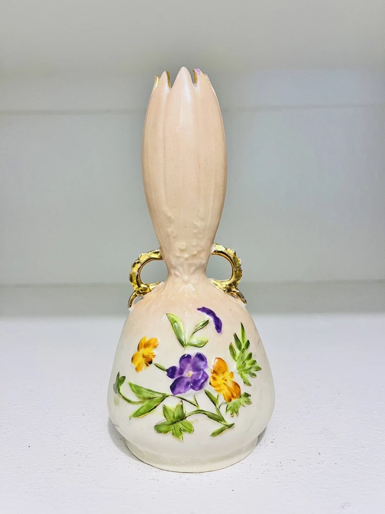 ELEGANT HAND PAINTED VINTAGE FLORAL BUD VASE TRIMMED IN GOLD ~ #4810-24. 7”