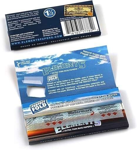 If you like standard Elements 1 1/4 papers, you'll love these Elements 1 1/4 papers that have been improved with Perfect Fold technology. Elements researched where the fold of the papers should be in order to facilitate the easiest rolling experience. What resulted is their Perfect Fold papers: the easiest papers to roll you'll ever smoke. In addition, like all Elements papers they are pressed ultra thin, which makes them extremely smooth-smoking and clean-burning. Each pack contains 50 papers.