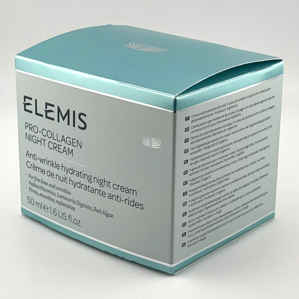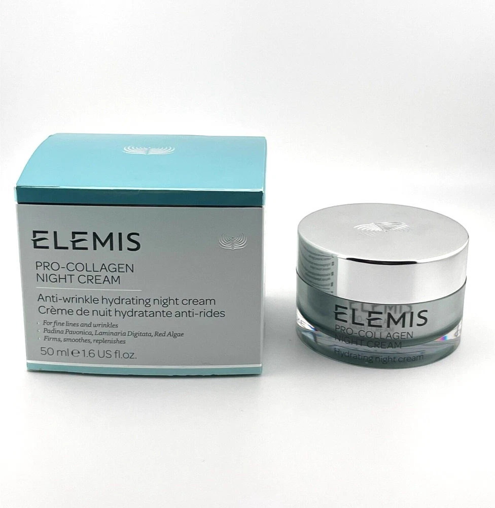 ELEMIS Pro-Collagen Night Cream - 1.6 fl oz / 50 ml | New Unlock the secret to youthful, rejuvenated skin with ELEMIS Pro-Collagen Night Cream . This luxurious night cream is expertly formulated to work overnight, helping to hydrate, firm, and reduce the appearance of fine lines and wrinkles. Infused with powerful marine and plant extracts, this rich cream nourishes and revitalizes the skin while you sleep, so you wake up with a smoother, more radiant complexion. Features: 1.6 fl oz / 50 ml full-size jar, new and unused Formulated with marine and botanical ingredients for deep hydration Clinically proven to improve skin elasticity and reduce wrinkles Ideal for all skin types, including sensitive skin Lightweight yet rich texture absorbs quickly Benefits: Provides intense moisture and nourishment overnight Helps restore skin elasticity and firmness for a youthful appearance Reduces the appearance of fine lines and improves skin texture Promotes a radiant, refreshed complexion by morning Experience the transformative power of ELEMIS Pro-Collagen Night Cream , your essential nighttime companion for smoother, more youthful-looking skin.