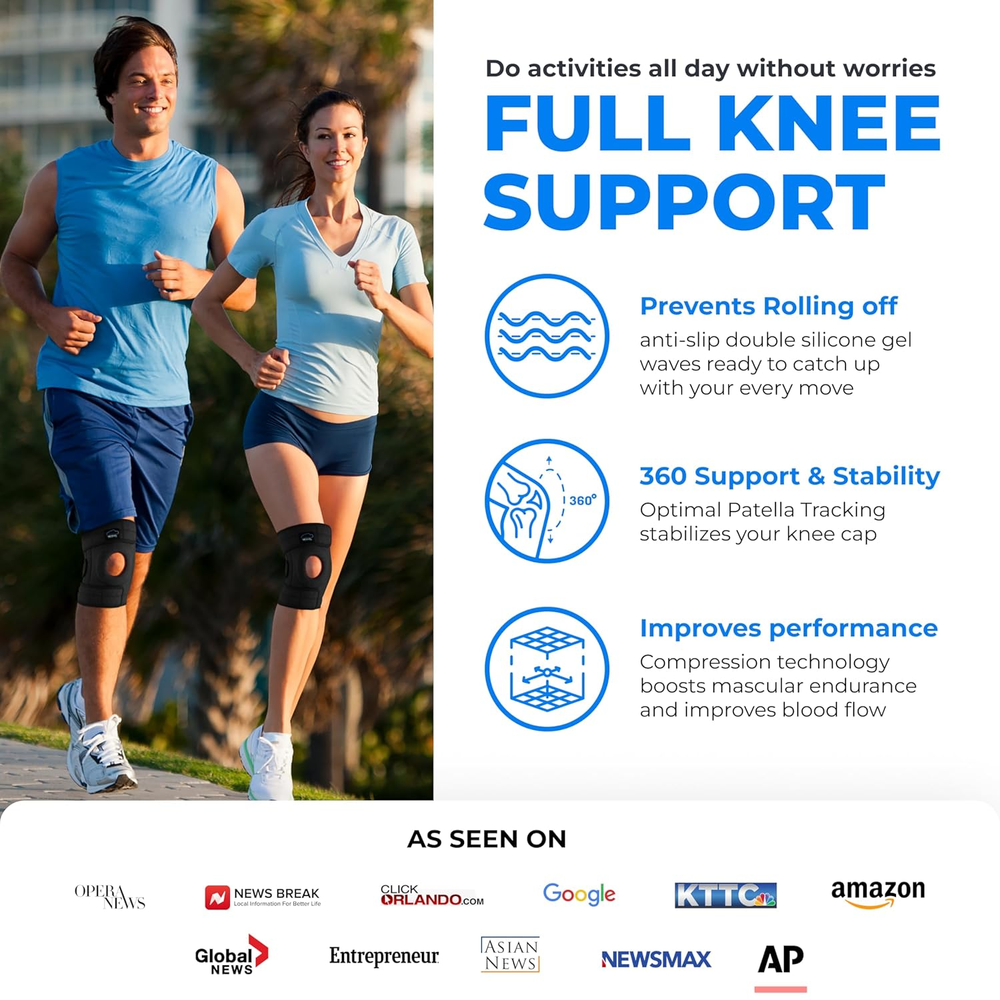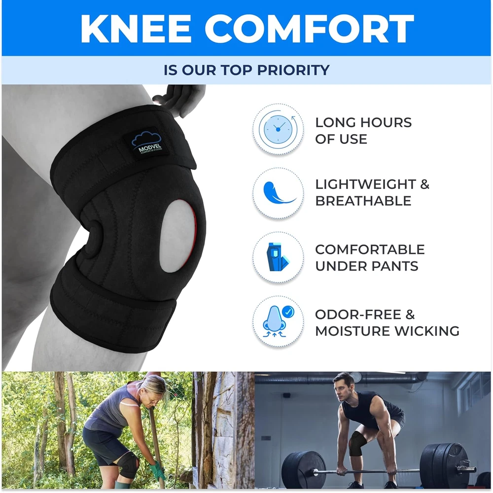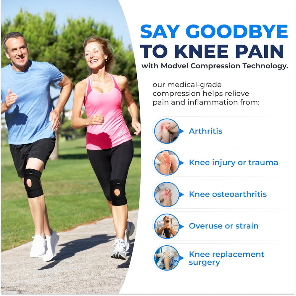 ELITE Knee Brace for Men & Women – Patella Gel Pads & Side Stabilizers for ACL, Meniscus Tear, Arthritis & Injury Recovery – Maximum Support for Running, Sports & Joint Pain Relief Relieve joint pain - Our adjustable knee brace with side stabilizers & Patella Gel Pads provides optimal support for meniscus tear, ACL injury, & arthritis. A stabilizing knee brace for bone-on-bone support, find relief with our innovative design. Comfort & support - A snug fit with its 3-strap system & high-quality hook & loop fasteners. It retains heat to relax muscles & increase blood flow, aiding in joint recovery & relieving pain from activities like basketball, football or tennis. Enhance performance - Our best compression knee brace caters to various sports enthusiasts. Whether you're dealing with meniscus tear, MCL sprain, or just general knee pain. Our ACL knee support brace promotes a swift recovery & reducing inflammation Perfect fit for men & women - Designed sports knee brace for men and women or women plus size. Say goodbye to discomfort and hello to support with our knee brace for meniscus tear, providing relief for everyday activities and intense workouts Optimize movement - Ensures a great fit with side stabilizers & patella gel pads, relieving pain for those suffering from arthritis, patella dislocation or meniscus tear. Hitting the gym or recovering from a knee injury, it offers support you need. Product Description Trusted Bestselling Modvel Products To Choose From: Add to Cart Add to Cart Add to Cart Add to Cart Add to Cart Add to Cart Customer Reviews 4.2 out of 5 stars 1,863 4.3 out of 5 stars 6,887 4.4 out of 5 stars 9,910 4.4 out of 5 stars 5,250 4.4 out of 5 stars 963 4.3 out of 5 stars 807 Price $29.86 $ 29 . 86 $23.93 $ 23 . 93 $22.97 $ 22 . 97 $34.93 $ 34 . 93 $39.93 $ 39 . 93 $19.93 $ 19 . 93 Lifetime Product Support ✔ ✔ ✔ ✔ ✔ ✔ Industry Standard Material ✔ ✔ ✔ ✔ ✔ ✔ 360 Degree Stabilization ✔ ✔ ✔ ✔ ✔ ✔ Optimal Compression ✔ ✔ ✔ ✔ ✔ ✔ Level of Support Firm Support Firm Support Firm Support Adjustable Support Adjustable Support Firm Support Features Washable and durable Breathable compression fabric Breathable & moisture-wicking Adjustable Free lumbar pads 16-hole Breathable Mesh 3D Knit Fabric Benefits Unique compression technology Optimal 360 Compression Optimal support for swelling Immediate & lasting relief Instant relief on lower back Optimal 360 Compression Sizes 3 Sizes from Small to XX Large 6 sizes from Small to 3XL 6 sizes from Small to 3XL 6 Sizes from Small - Plus Size 7 Sizes from Small - Plus Size — Number of Items 1 Color A Black Specific Uses For Product Acl,Patella,Meniscus Tear,Arthritis,Pain Relief,Mcl,Knee Support Use for Knee Age Range (Description) Adult Department womens Size Small/Medium Product Dimensions 9 x 5 x 0.8 inches; 6.38 ounces 5.0 inches x 9.0 inches x 0.8 inches. Weight: 6.38 oz Shipping from the USA All of our products are shipped from the USA, ensuring quick delivery to your destination. Payment We offer the following payment methods: PayPal, credit card, bank transfer, and eBay's secure payment system. Free Shipping & Free Returns Shipping within the USA is FREE. Additionally, any return is absolutely free for you. Risk-Free Purchase You have the option to return an item within 30 days without any justification. We cover the return shipping costs! Fast Shipping We ship immediately upon receipt of payment. Generally, the package is delivered within 2-3 days in the USA. If it takes longer, we will contact you. Quality and Costs Made in Europe, USA, China No customs fees or additional charges Total satisfaction guarantee Invoice with declared VAT available upon request in .pdf format Feedback Your feedback is very important to us. After you pay for your purchase, you will automatically receive positive feedback from us.