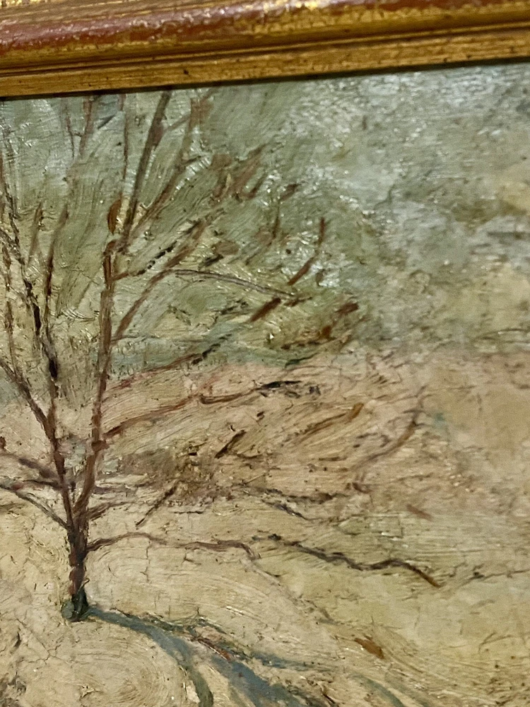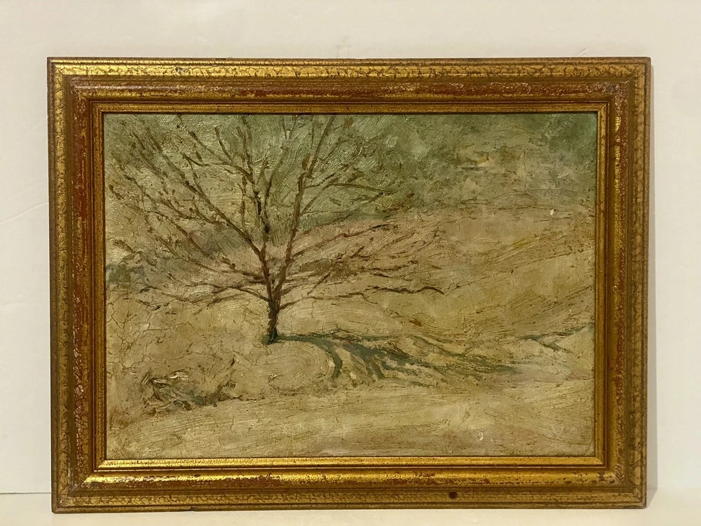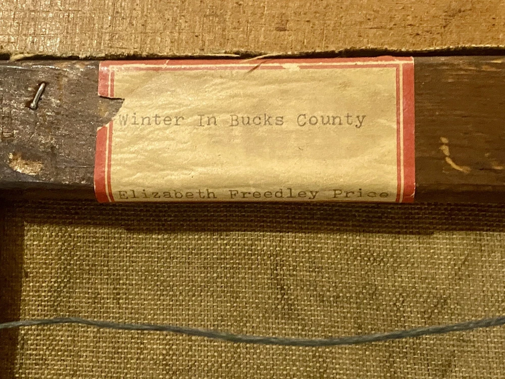 This stunning painting by renowned American artist Elizabeth Freedley Price showcases the beauty of winter in Bucks County, Pennsylvania. The small-sized, original oil on canvas piece is print signed & titled on the verso and comes framed. The landscape subject is depicted in an impressionistic style, with rich colors and texture that make it truly one of a kind. The painting measures 10 inches in height and 14 inches in width with a total size including the frame of 12 5/8 inches in height by 16 5/8 inches in width and is a handmade original production technique. This item is perfect for art enthusiasts and collectors alike who appreciate the timeless beauty of impressionism.