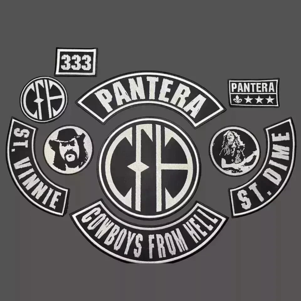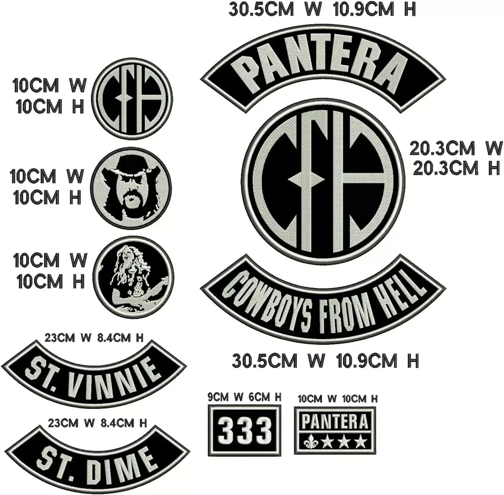 EMBROIDERED PANTERA CFH FULL PATCH SET 10PCS The Embroidered Pantera CFH Full Patch Set is a comprehensive collection of 10 high-quality patches, celebrating the iconic "Cowboys from Hell" theme. Made from durable fabric, these patches feature detailed embroidery of logos, symbols, and text associated with Pantera. Designed for a secure and permanent application, they are perfect for jackets, vests, or other apparel, making them a must-have for any Pantera fan. Why Choose Us? Our product stands out due to its exceptional quality, unbeatable value, and unparalleled customer satisfaction. Specifications Feature Description Design Detailed embroidery featuring the iconic Pantera "CFH" (Cowboys from Hell) theme. Set Includes A complete set of 10 patches, covering various designs and sizes. Themes Includes logos, symbols, and text associated with Pantera and the "Cowboys from Hell" album. Attachment Sew-on patches for secure and permanent application. Order now and experience the difference! View Store