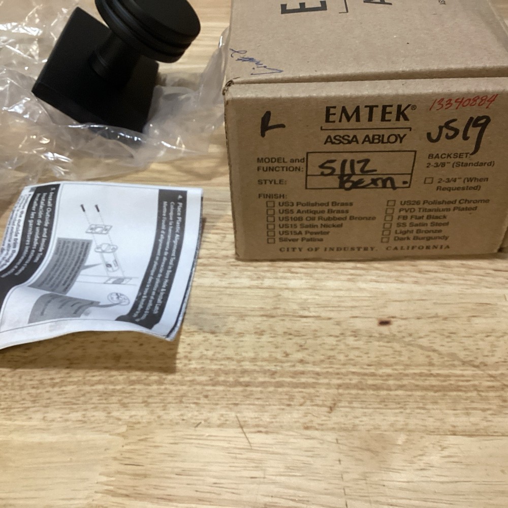EMTEK 5112BNUS19 Passage Rectangular Rosette With Bern Knob -black with 2 3/8 back set open box free shipping