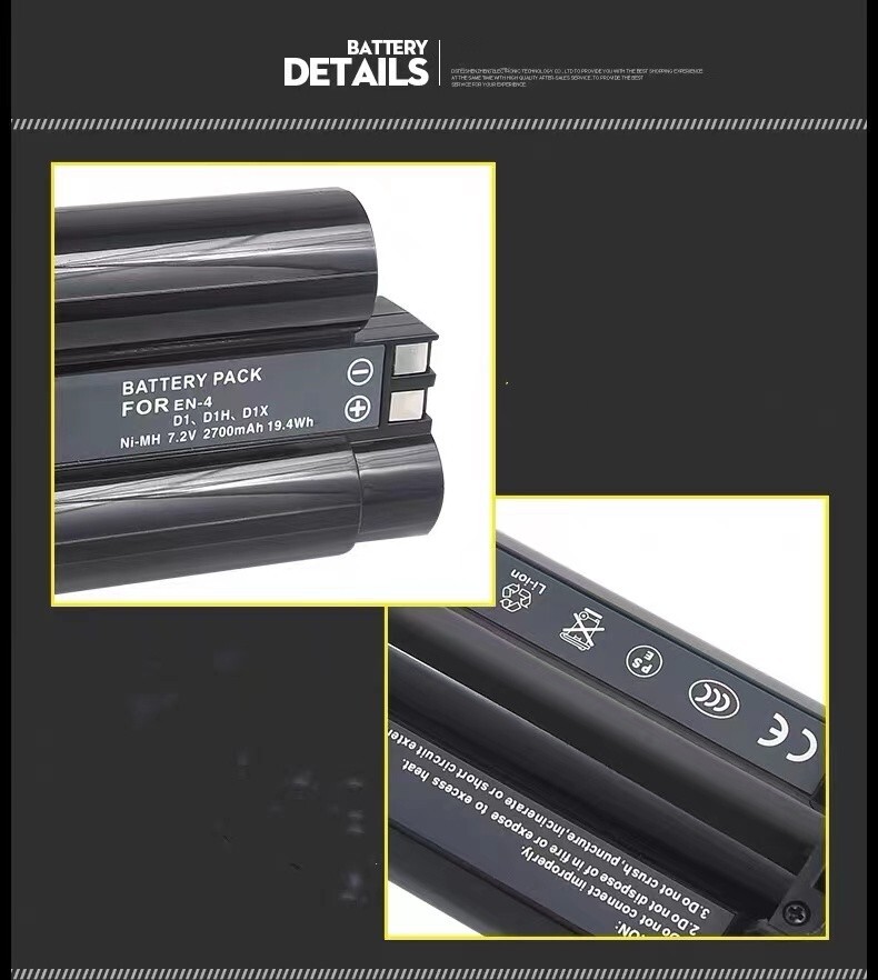 Replacement For Nikon EN-4 Battery Technical Specs Battery Type : Ni-MH Battery Capacity : 2700mah Battery Volt : 7.2v Battery Dimension : 117.80 x 61.52 x 33.15mm Battery Weight: 109.25g Condition:New This Battery is also compatible with below Nikon Battery Part Numbers DDEN4 EN-4 This Battery Can Be Used For Below Nikon Models D1 D1H D1X Package: 1 Pack EN-4 Battery