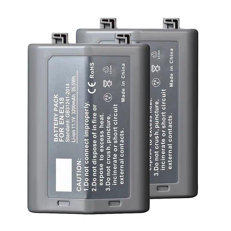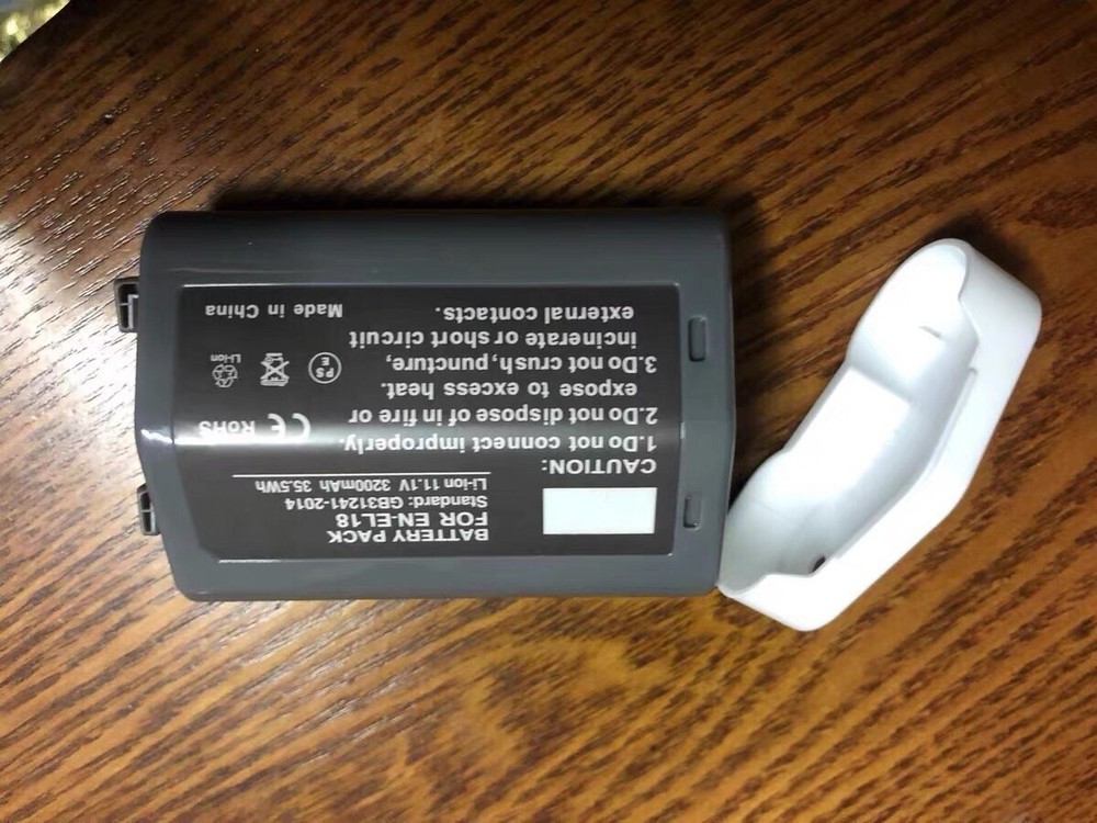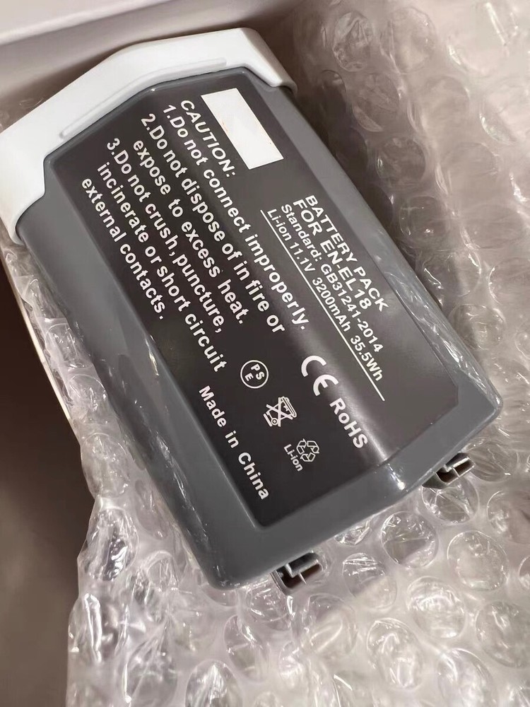 Battery Description Item model number:EN-EL18 Battery Type : Li-ion Battery Capacity : 35.5Wh/3200mAh Battery Voltage: 11.1V Battery Cell Composition:Lithium Ion Product Dimensions:79 x 56 x25 mm Compatible Camera Models:For Nikon Camera D4, D4S, D5, D6 Package: 1 Pack EN-EL18 Battery