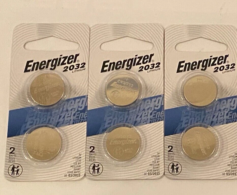 Up for sale are 6 new genuine Energizer CR2032 3-volt lithium batteries inside blister factory sealed package as pictured. 3 Packs - 2ct. Per Pack Expiration date 2033. Applications: Remote Controls, Photo Micro Lites, Motherboards, CMOS, Dreamcast VMUs, PocketStations, AbTronics, Watches, Cameras, Calculators, Keyless Car Remotes, Garage Door Controls, Electronic Dictionaries, and other devices. Replaces: CR2032, 5004LC, DL2032, ECR2032, L14