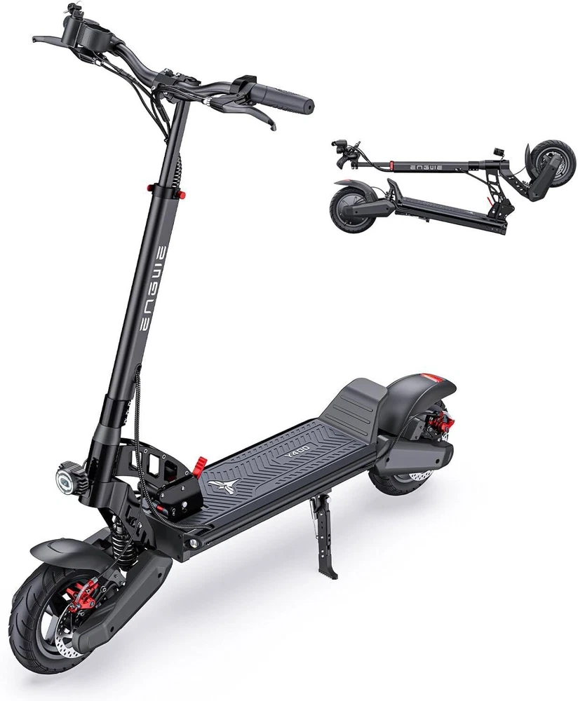 ENGWE Y400 750W Electric Scooter for Adult Up to 32Mph & 24Nm, 499WH Folding Kick Scooters Reach 25Miles Range, 10" Tire E-Scooter with C-Shaped & Rear Suspension for Commuter/Off Road About this item 🛴【C-Shaped Strong Suspension】ENGWE Y400 is equipped with C-shaped suspension and rear suspension, which can minimize vibration during riding. The 21CM higher chassis also makes off-roading smoother; the complete lighting system includes headlights, brake lights, and turn signals, which can let others better understand your driving path even when commuting in the city at night. 🛴【All-terrain e-scooter equipped with three riding modes】The 500w (750W peak) escooter has three speed modes, which can reach 13.7mph/25.5mph/32mph respectively, so you can feel the joy brought by the passion of speed. And the 24Nm and 15° climbing ability are enough for you to climb over most sections of the road. 🛴【High-performance 499WH battery】The off road scooter is equipped with 48V 10.4AH battery with a maximum range of up to 25Miles (1st gear pure electric mode), a single charge of about 6h, and an overheating protection system also ensures your riding safety. Very suitable for urban commuting and mountain off-road. Please note that the mileage will vary depending on road conditions, riding mode, weather, rider weight, battery power value, etc. 🛴【Foldable design suitable for long-distance travel】 In order to meet the needs of more long-distance travel, the foldable electric scooter is designed to be easily put into the car, and climbing stairs is no longer a problem, giving you more choices. The folded size is: 52L*24W*20H inches. The scooter weighs 52Lbs and can carry a maximum of 265Lbs. 🛴【After-sales service】each electric scooter is 90% pre-installed, the rest of the steps can be easily completed according to the instructions; our customer service team is always at your service, please feel free to contact us if you have any questions. Certificate:UL 2272 Certified/GCC Product Description Y400 Electric Scooter wih C-Shaped Suspension for Commuting/Off Road C-Shaped Suspension Brings More Comfort to Riding Foldable Y400 electric scooter for outdoor entertainment Escooter Suitable for Most People