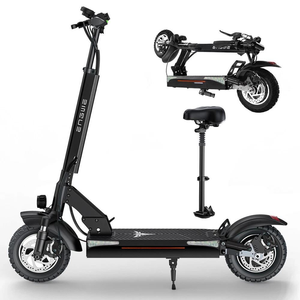 🛴A new option that allows you to freely across the city - Our New Y600 Adult Electric Scooter with Seat which is with powerful battery( 48V 18.2Ah ), makes it easier for you to complete daily travel, and one charge is enough for you to ride for 43.5 miles under specific conditions, max load of 330 lbs. 🛴Let You Ride As You Want, Easy to Drive - Our New Y600 E-scooter has three different riding modes ( Eco: 9Mph, D: 18Mph, S: 28Mph ), you can choose the most suitable mode for you according to your needs, and the 600W Motor/ 830w powerful high brushless motor allows you ride speed up to 28Mph, and handle all kinds of road conditions with ease! 🛴Comfortable Riding Experiences, Let You Enjoy Every Trip - Our New Y600 Electric Scooter for Adult adopts front and rear wheel suspension system and 10-inch pneumatic tires, which means you can enjoy a smoother and more comfortable riding experience, even on rough roads! 🛴Make Your Safety More Secure - Our New Y600 E-scooter for Adult is not only equipped with super bright headlight & taillight, but also has a side ambient light, which improves the safety of night riding and allows you to travel with peace of mind at any time. The perfect front & rear dual brakes and electronic braking system allow you to stop whenever you want. 🛴Your Great Helper for Travel - You can fold this New Y600 Electric Scooter with Seat for Adults with two-steps only in a few seconds for easy carrying and storage. The unfolded size: Package Dimensions (LWH): 48*9.4*18.9 (122x24x48 cm) . The folded size is Folded Size: 46.4*11*18.5 inches (118*28*47 cm) , easy to put in your garage or office. 🛴Buy with Confidence - ENGWE , a brand you can trust. We have always focused on the quality and technical improvement of electric scooters. Our electric scooter is designed to be the most sturdy and powerful electric scooter which will quickly become your favorite commuting or outdoor travel companion. ENGWE offer 180-days warranty for different parts, contact us to get fast and professional service. 🛴【Important Note】- The max speed and max range of per full charged vary based on a lot factors, including: rider's weight, riding surface, incline, ambient temperature, battery level, riding style (stop/start vs cruising), wind direction, wind speed etc. Specification: Model: Y600 Electric Scooter Body: Aluminium alloy Motor torque/N.M:28 NM Battery:48V18.2AH Lithium-Ion Battery*1 Range:43.5 miles Brakes: Mechanical Disc Brake/Power-off Brake Lever Tires: 10" Off-road Tires Max. loading: 330 lbs Max. speed: 28 mph Charging time: 6 Hours Product weight: 50 lb Brake:Mechanical Disc Brake/Power-off Brake Lever Tires:10*4.0 Tires Charging Time:About 10H Waterproof Grade:IPX5 Bike Weight:26.5 KG (58.4 lbs) Gross Weight:30.5 kg (67.2 lbs) Product Description The powerful 830W motor brings Speed up to 28MPH (Release speed),48V 18.2AH Battery brings long range can travel 43 miles for more fun. The enhanced climbing ability and full suspension design are suitable for more terrains. Detailed turn signals, front and rear lights will ensure your safe riding. Package contents: 1 x Electric scooter. 1 x Portable Folding Handle 1 x Tool set. 1 x Main charger. Rider Height: 5.4 (ft) -6.2 (ft) Payload Capacity: 264 lbs (120 kg) Package Dimensions (LWH): 48*9.4*18.9 (122x24x48 cm) A--Minimum Handlebar Height 38.5 inches (98 cm) B--Maximum Handlebar Height 48.4 inches (123 cm) C--Total Length 46.4 inches (118 cm) D--Minimum Saddle Height 23.6 inches (60 cm) E--Maximum Saddle Height 30.3 inches (77 cm) Folded Size: 46.4*11*18.5 inches ( 118*28*47 cm) A--Height 18.5 inches (47 cm) B--Length 46.4 inchs (118 cm) C--Width 11 inchs (28 cm) Our product: (1) Our product approved by UL2272/CE/ROHS certificates (2) Every piece of spare part will be inspected before assembling and very piece of completed product will be tested before shipment. Contact US: (1) Welcome to wholesale and purchase,If you have any question ,Please contact us first. We will reply you within 24 hours. (2)We will leave positive feedback to buyer as soon as buyer pays for the item.We hightly appreciate that you can contact with us before you leaving Negative feedback or Neutral feedback .We will offer help to resolve your problems as fast as possible.