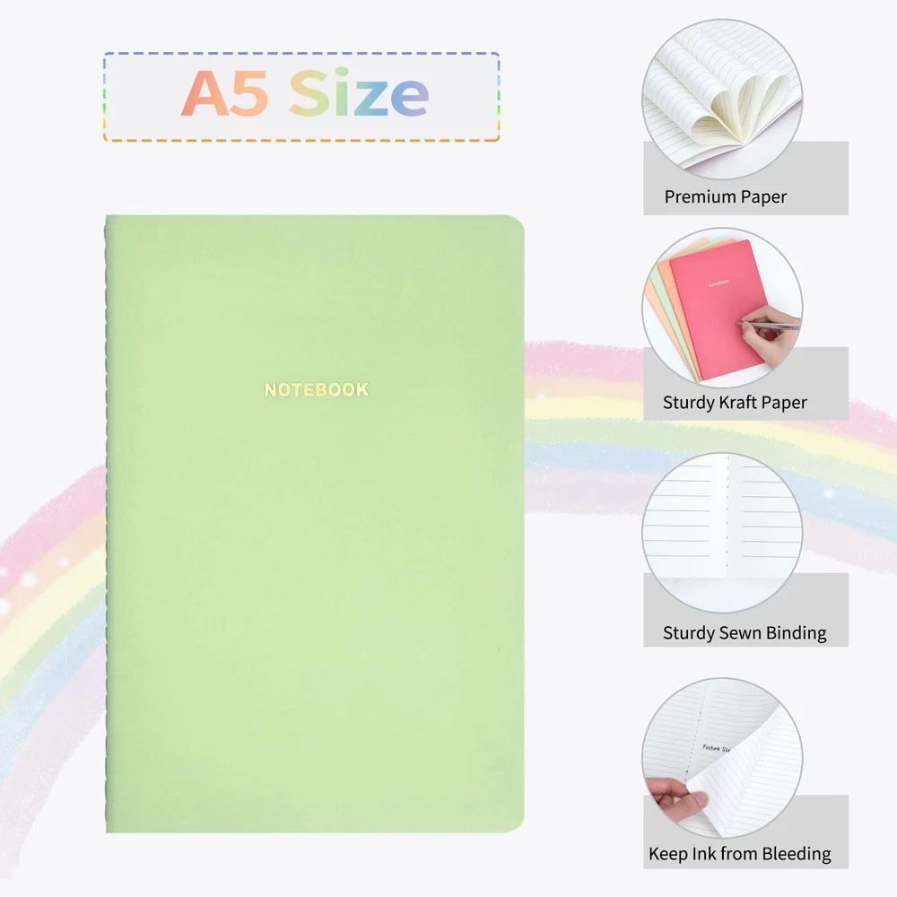 Colorful bulk journals: You will get a set of 12 cute softcover notebooks in 6 pastel colors, 2 each color Sturdy body: Made of study white card stock that won't bleed your pens, markers or highlighters Fine pages: Each piece in our notebook set is a combination of 60 sheets of scratch paper (30 sheets) with study paper, light weight, and smooth writing. Convenient size: Available in a perfect A5 size of 8 x 5.5 inches, this softcover notebook is thin and light enough to fit in almost any bag or purse. Take this lined writing journal with you on your next travel adventure and it will take up hardly any space in your bag. Widely used: This journal for teens and adults can be used as a travel journal, a meditation notebook, a mood or dream journal, a wedding diary, or just a plain old cute notepad for school.