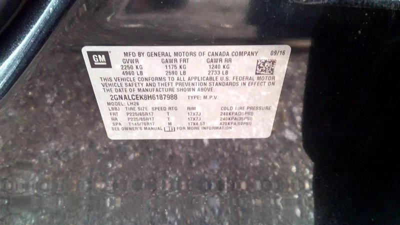 EQUINOX 2017 Jack 1036342971 NO FOAM TRAY NO SPARE TIRE This part requires VIN (Vehicle Identification Number) verification prior to shipping. Please send VIN prior to purchase, or include in your purchase notes. If not, VIN will be requested after purchase, prior to shipping the order. Without VIN verification, orders are subject to seller cancellation. If you have any questions about this part, or any other parts from this vehicle, please click HERE to send us a message . We answer all questions promptly during regular business hours. Monday through Friday 7am-5pm Central Time. Donor Vehicle Information Model: EQUINOX Year: 2017 Mileage: 136000 Stock Number: 1NH037 Specific Part Notes: 000,4DR,ASSEMBLY Explanation of damage codes in part notes: - Part Fitment Information This part will fit these makes and models with these options If you do not see your vehicle in this list, please click HERE to send us a message so before buying so we can verify if it will fit your vehicle. - Our Promise Our Promise is that you are completely satisfied with every part you buy from Counselman Auto Recycling If you have a problem with the part, changed your mind or the part does not fit, simply let us know. If you need help with how to return an item, send us a message. We are here to help. - Shipping Information This part willl ship with Fedex or USPS with live tracking information. The tracking number will be posted to eBay and you can find it in your item purchase history.