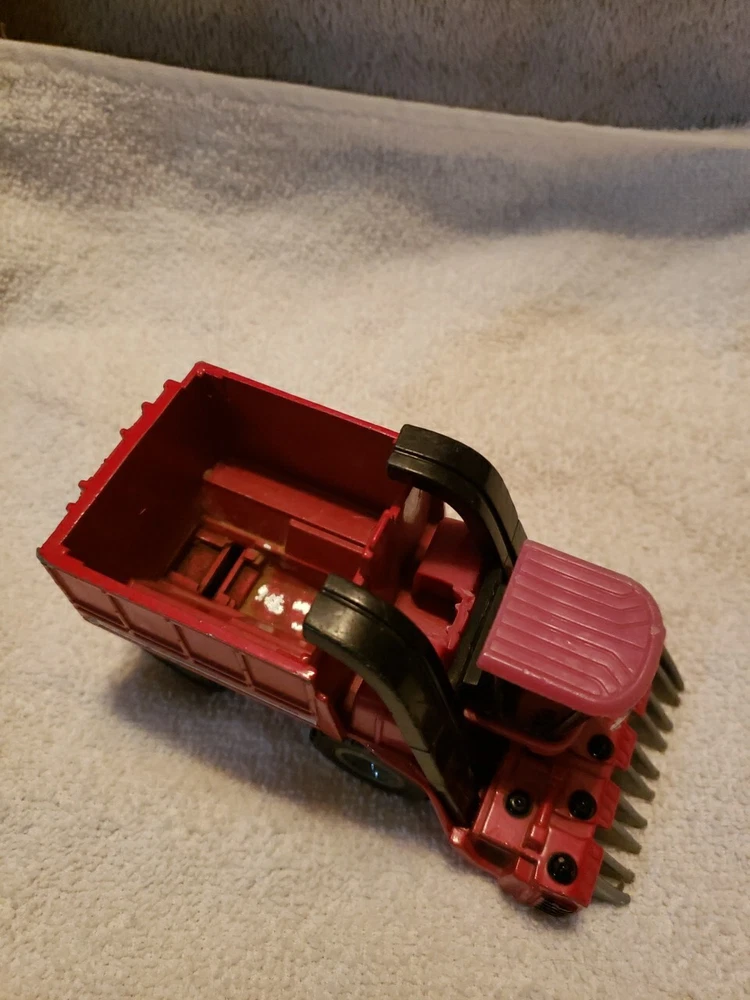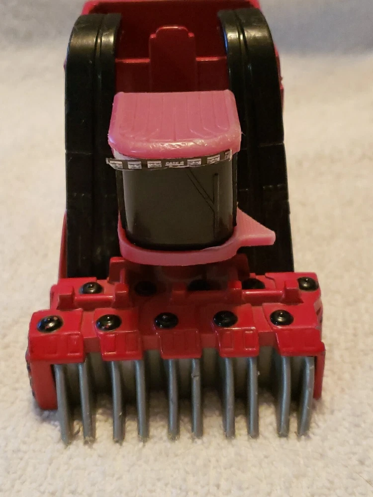 This ERTL CASE IH 2555 Cotton Express Combine is a great addition to any farming enthusiast's collection. With a vibrant red color and 1:64 scale, this diecast combine is sure to catch the eye. The vehicle type is a combine, and the brand is ERTL. The steps on the combine are currently broken off, but this does not take away from the overall quality of the toy. It was manufactured in the United States and is part of the farming character family. This toy is perfect for children and adults alike who enjoy collecting and playing with farm vehicles.
