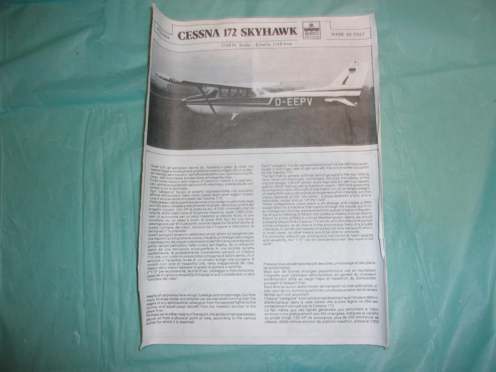 This offering is for a>>>>>>> ERTL CESSNA 172 SKYHAWK 1/48th SCALE UNASSEMBLED MODEL AIRPLANE IN THE ORIGINAL BOX.THE BOX IS IN VERY SHELF WORN CONDITION.IF THERE ARE ANY PIECES MISSING I WILL NOT ACCEPT A RETURN.PLEASE SEE ALL OF THE PHOTOS AND FEEL FREE TO ASK ANY QUESTIONS YOU MAY HAVE. THIS ITEM HAS NEVER BEEN OFFERED ON EBAY BEFORE NOW.I JUST PURCHASED A LARGE MODEL COLLECTION THAT I WILL BE LISTING OVER THE NEXT FEW WEEKS!! YOU ARE BUYING THE EXACT ITEM PICTURED!!!! I AM ALWAYS GLAD TO COMBINE SHIPPING!! Buyer pays actual USPS PRIORITY MAIL SHIPPING FEES