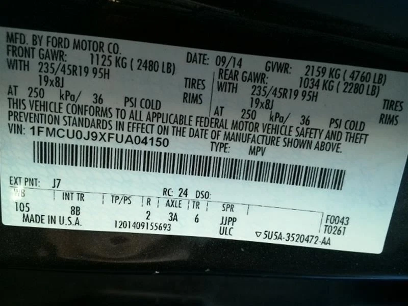 ESCAPE 2015 Jack 32442661 NO FOAM TRAY NO SPARE TIRE This part requires VIN (Vehicle Identification Number) verification prior to shipping. Please send VIN prior to purchase, or include in your purchase notes. If not, VIN will be requested after purchase, prior to shipping the order. Without VIN verification, orders are subject to seller cancellation. If you have any questions about this part, or any other parts from this vehicle, please click HERE to send us a message . We answer all questions promptly during regular business hours. Monday through Friday 7am-5pm Central Time. Donor Vehicle Information Model: ESCAPE Year: 2015 Mileage: 90000 Stock Number: 1LB012 Specific Part Notes: 000,4DR,ASSEMBLY Explanation of damage codes in part notes: - Part Fitment Information This part will fit these makes and models with these options If you do not see your vehicle in this list, please click HERE to send us a message so before buying so we can verify if it will fit your vehicle. - Our Promise Our Promise is that you are completely satisfied with every part you buy from Counselman Auto Recycling If you have a problem with the part, changed your mind or the part does not fit, simply let us know. If you need help with how to return an item, send us a message. We are here to help. - Shipping Information This part willl ship with Fedex or USPS with live tracking information. The tracking number will be posted to eBay and you can find it in your item purchase history.