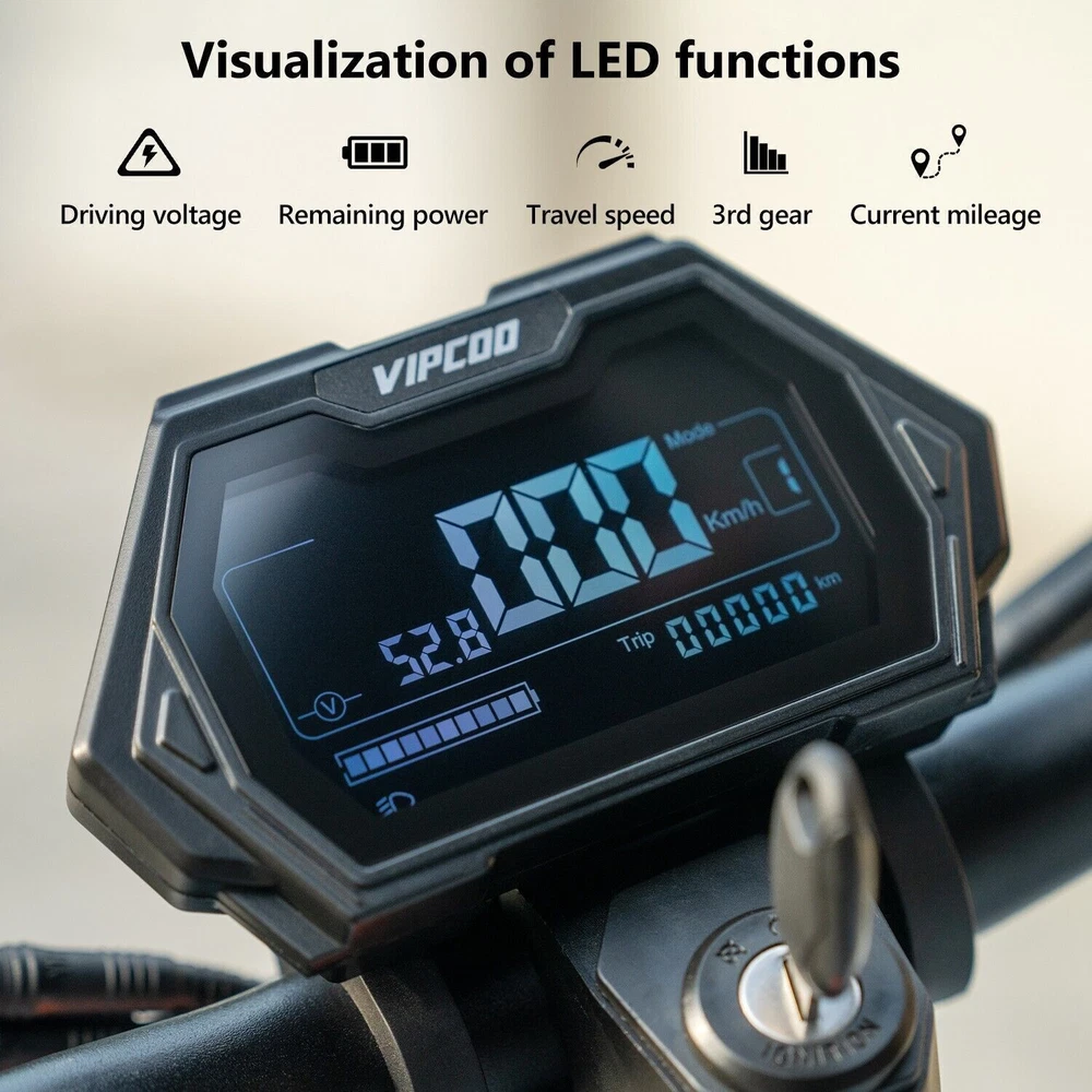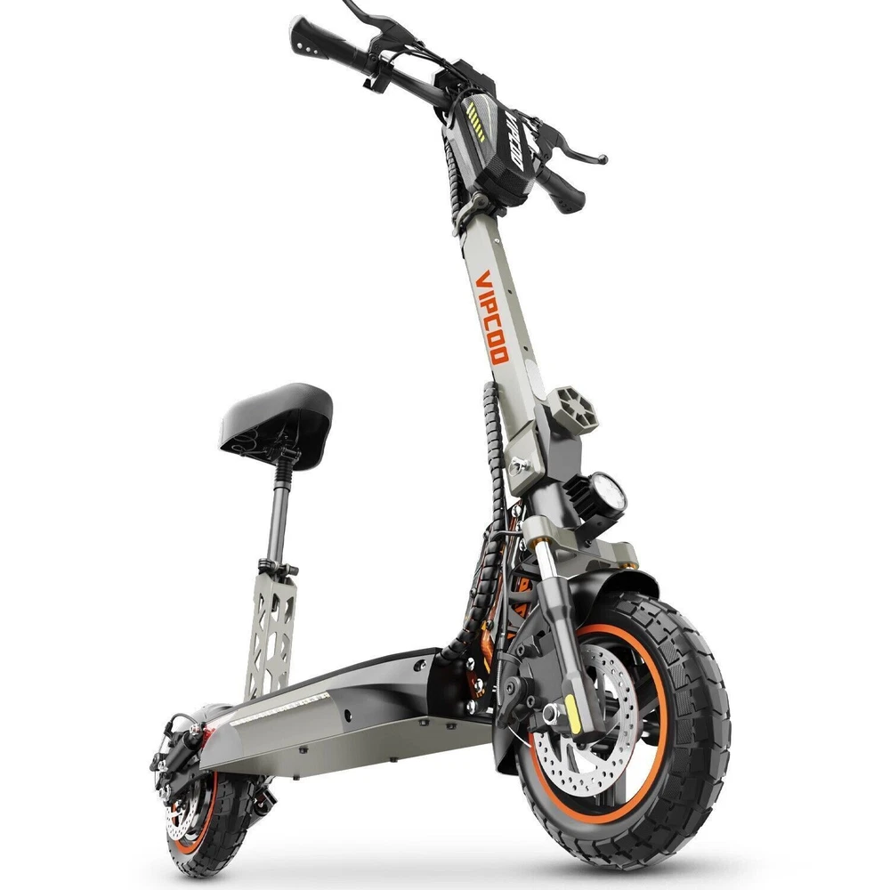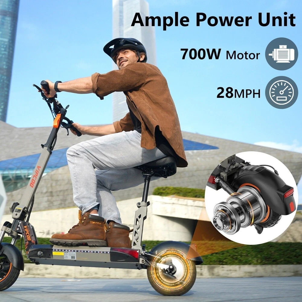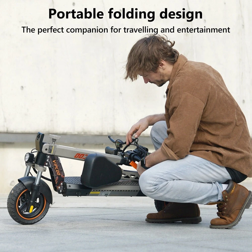 VS-S Electric Scooter, 700W, 28mph, 19miles, Folding Commute eScooter Fast Speed US STOCK Upgraded Electric Scooter: The VIPCOO VS-S electric scooter can speed up to 28 mph, travel range of 45 miles per charge, and max load of 264 lbs. Come with a powerful 700W motor that can allow the electric scooter climb to 15-25°slope. Newly Long-range Battery: Equipped with a high-capacity(48V 12.5AH) battery, the VIPCOO VS-S electric scooter can travel up to 45miles per charge, the longest range of city commuting e scooter. Great for city commuting. Safety and Comfortable Commuting: VIPCOO VS-S electric scooter features a front-wheel mechanical drum brake and a rear regenerative e-brake to enhance safety. The front and rear wheels are equipped with 10-inch air-filled tires to ensure max comfort, even on bumpy roads. Easy to Fold: VIPCOO VS-S can be folded quickly (folded size: 20.5inches, unfolded size: 45.7*23.6*46-51.2*27.6-29.9* inches). It can be carried on public transportation, easily stored in car trunks/elevators/subway, and other compact spaces. Specification: Model: VIPCOO VS-S Electric Scooter Body: Aluminium alloy Motor: 700W ( 900w Peak Power ) Battery: 48V 13AH Lithium Battery Brakes: Disc brake + Electronic brake Tires: 10" Off-road Tires Lights: Front LED headlight, turn signals and taillight Max. speed: 25 - 28 mph Maximum range: 15 - 45 miles Charging time: 6 -8Hours Package contents: 1 x VS-S Electric scooter. 1 x Instruction 1 x Tool set. 1 x Main charger. 1 x Bag 1 x Toolkit 1 x Rear Trunk