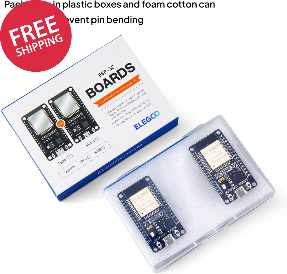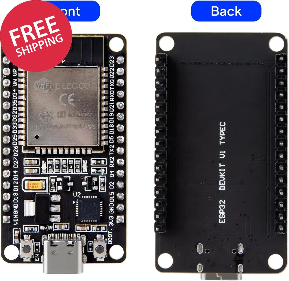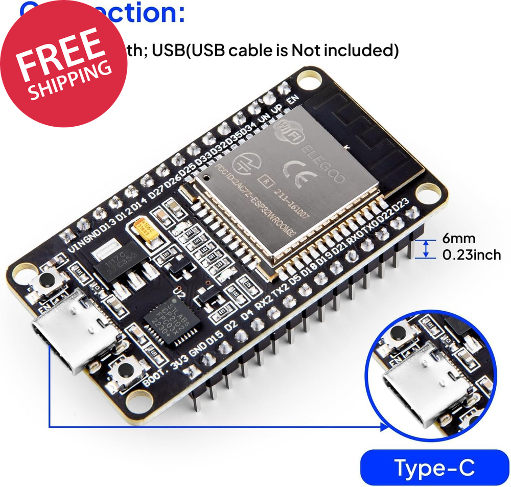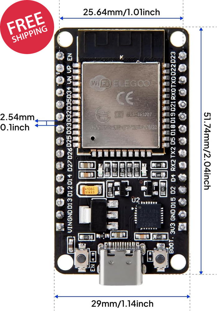 3PCS ESP-32 Development Board USB-C, 2.4Ghz Dual Mode Wifi+Bluetooth 4.2 Dual Core Microcontroller Support AP/STA/AP+STA, CP2102 Chip Powerful Processing Capabilities: ELEGOO ESP-32 development board integrates a dual-core 32-bit processor running at up to 240 MHz, providing impressive processing power. Wireless Connectivity: The ESP-32S development board integrates both Wi-Fi and Bluetooth capabilities, supporting 2.4 GHz Wi-Fi and Bluetooth, enabling a wide range of wireless communication and connectivity options. Power-Efficient: The chip features a low-power design that allows for dynamic power adjustment by scaling the clock frequency across different operating modes. This makes the development board suitable for battery-powered Internet of Things (IoT) devices. Versatile Peripheral Interfaces: The development board offers a rich set of peripheral interfaces, including GPIO, UART, SPI, I2C, and more, allowing for easy connectivity to a wide range of sensors. Supports Over-the-Air Firmware Upgrades: The ESP-32 chip features Over-the-Air firmware upgrade capabilities, enabling developers to continue updating and optimizing the firmware even after the product has been released. ELEGOO ESP-32 Development Board 2.4GHz Dual-Mode WiFi + Bluetooth 4.2 Dual Cores Microcontroller Features: Built-in Wi-Fi and bluetooth (Bluetooth Connection Distance: 10 Meters) Dual core, this means it has 2 processors. The clock frequency can go up to 240MHz and it has a 512 kB RAM. The board offers a rich set of peripheral interfaces, including GPIO, UART, SPI, I2C. Package List: ESP-32 Development Boards (USB-C) x 3 Operating System Linux Ram Memory Installed Size 0.5 MB Graphics Coprocessor Integrated Graphics CPU Model A33 ARM Cortexâ ¢ A7 Quad Core CPU Speed 2.4 GHz Graphics Card Description Integrated Model Name EL-SM-012 Personal computer design type Barebone Specific Uses For Product Everyday Use Shipping Fast shipping is very important for us. Our standard US shipping service is FREE. Your order will be shipped within 2-3 business days upon full payment received. Your order will be delivered within 2-3 business days after the handling time. We only ship to the confirmed PayPal address. We reserve the right to cancel any order for any reason at any time. We are not responsible for undeliverable addresses. Returns and payment We offer a 30 days return policy from checkout winning date. We allow only PayPal as payment method FeedBack Your feedback very important to us, after you get your package and you are satisfied with our service please leave us positive feedback If you have any problem with your order / any questions please before leave any type of feedback For any questions, using eBay contact system Please visit our eBay store to check out other items for sale! Thank you for shopping at our store.