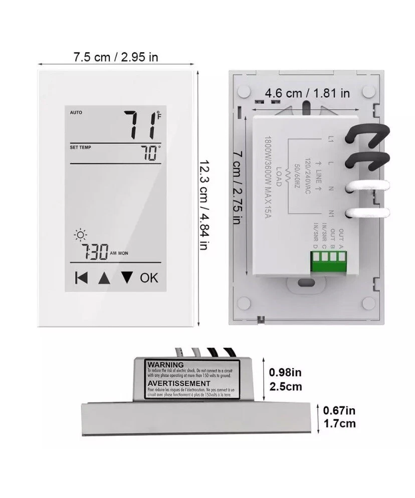 This item is new . The box has been opened so contents can be inspected to verify condition and accurate listings 16 PROGRAMABLE: 7-day schedule programming electric floor heating thermostat. The weekly program runs in 4 or 2 stages per day, 7 days a week. ETL approved, Advanced Dual Voltage 120/240V with built-in Class A GFCI (Ground Fault Circuit Interrupter) protection that protects people from electric shock. It is very important to check whether the GFCI function is normal or not every month based on the manual. Easy installation to control your floor heating system(s) up to 15A Three sensor applications are available: Room: Controls room temperature based solely on built-in sensors. Floor: Controls the floor temperature based solely on the floor sensor. Room.Limit: Controls the room temperature based on the built-in sensor while monitoring the floor temperature not to exceed the upper limit. ET-72G is Non-WIFI version. 4 Year limited