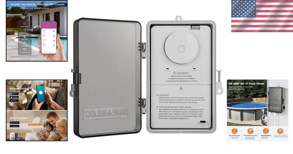 ETL-Certified 40 AMP Smart Pool Timer, Waterproof for Outdoor Use, WiFi Control ‹ › ‹ › ‹ › ‹ › ‹ › ‹ › ‹ › ‹ › ‹ › ETL-Certified 40 AMP Smart Pool Timer Waterproof for Outdoor Use, WiFi Control Features: Heavy Duty Performance: Powers high-demand devices such as pool filter pumps, water heaters, and spas. Compatible with a variety of voltages: 1HP, 120 VAC; 2HP, 240 VAC; Suitable for 120 to 277 VAC. ETL Listed, conforming to UL STD.60730-1 for safety and reliability. Smart Management: Remote Control: Manage your pool timer via the Tuya Smart Life APP, allowing you to operate your pool timer from anywhere. Works seamlessly with Amazon Alexa and Google Home Assistant for voice-activated convenience. Operates on a 2.4 GHz Wi-Fi network, ensuring stable connectivity. Versatile Timer Functions: Customizable ON/OFF switch with multiple timer options, including program, countdown, and random modes. Share settings with family members for collective control. Features a reset button with an indicator light that doubles as a manual ON/OFF switch. Durability & Safety: Weatherproof Design: Raintight and rust-proof, built to withstand outdoor conditions. Made from durable insulating and flame-retardant materials for reliable performance. Ideal for outdoor use, providing protection against weather and tampering. Hassle-Free Installation: Easy Setup: Quickly install this swimming pool timer and set your desired schedule for optimal pool management. Eliminates the need for manual switching, providing peace of mind. Perfect wireless solution for outdoor pool timers offering efficiency and convenience. Transform Your Pool Experience: Upgrade to our ETL-Certified 40 AMP Smart Pool Timer and bring your outdoor leisure to the next level. With its heavy-duty capabilities, weatherproof design, and smart remote management, you can effortlessly maintain your pool environment. Say goodbye to the hassle of manual control and embrace the modern convenience of automatic scheduling. Order yours today and enjoy a smarter, more efficient pool experience! Shipping Free & Fast Shipping - We offer free shipping to most of the USA with a normal delivery time of 3-7 days. However, due to the current situation, additional delivery time (up to 3 weeks) may be required for some items. Alternative Carriers - We may use alternative carriers (e.g. USPS, FedEx, UPS, etc.) to ensure your package arrives safely and on time. Due to the use of multiple carriers, we are unable to provide a tracking number automatically. Handling Time - Orders are processed and shipped within 1-2 business days of receiving cleared payment. Shipping Restrictions - Shipping to Alaska, Hawaii, Puerto Rico, Guam, and other US territories may incur shipping charges or delivery restrictions. Please contact us before ordering, or your order can be refunded/cancelled. State Restrictions - There may be restrictions based on your state of purchase. For example, certain items may not be shipped to California due to state regulations. Contact for Tracking Updates - If you require tracking updates or have any concerns about the delivery of your order, please feel free to contact us, and we will be happy to assist you. Return 30-Day Hassle-Free Returns - We want you to be completely satisfied with your purchase. If you are not, you can return the item within 30 days of receiving it for a full refund or exchange. Easy Return Process - To start a return, simply contact us and we will provide you with a prepaid return shipping label and detailed instructions. Restocking Fee - There are no restocking fees for returns. However, the buyer is responsible for return shipping costs if the return is not due to a seller's error. Refund Processing Time - Refunds will be processed within 5 business days of receiving the returned item in its original condition. Payment We accept all major credit cards, PayPal, and Apple Pay for your convenience. Your payment information is secure and encrypted to ensure a safe and seamless transaction. Please complete your payment within 3 days of purchase to avoid any delays in shipping. Feedback Your feedback is extremely important to us. We strive to provide the best products and customer service possible. If you are satisfied with your purchase, please take a moment to leave us a positive review. If you have any concerns or issues with your order, please contact us before leaving negative feedback. We are committed to resolving any problems and ensuring your satisfaction. Contact Us If you have any questions or concerns, please feel free to reach out to our customer support team. You can contact us through the eBay messaging system. We are available Monday to Friday, 9:00 am to 5:00 pm EST, and we will do our best to respond to your inquiry within 24 hours. Thank you for supporting our small family business! UPC: Not Set Set Includes: Smart Sensor Features: Auto-Off,Frost Warning,Humidity Level Setting,LC-Display,Safe Stop Technology,Selectable Weekdays,Smart Schedules,Water Consumption Data Display,Water Now Function,Remote Control,Weatherproof,Programmable Timer,Countdown Timer,Indicator Light,Manual Switch,Tamper Resistant,Durable Material Smart Home Protocol: Wi-Fi Smart Home Compatibility: Amazon Alexa,Google Home/Assistant,IFTTT (If This Then That) Material: Plastic Suitable For: Pool Pump Timer,Water Heater Timer,Spa Timer,Heavy Duty Timer Type: Switch Brand: Unbranded Number of Zones: 1 Number of Watering Programs: 1 Number of Outlets: 1 Model: Not Set MPN: Not Set Manufacturer Warranty: Not Set Threaded Connection: Not Set Watering Duration: Not Set Watering Frequency: Not Set Number of Items in Set: 1 Product Line: Not Set Indoor/Outdoor: Outdoor Control Style: App Control Power Source: AC Color: Black Item Length: Not Set Item Width: Not Set Country/Region of Manufacture: Not Set Battery Type: No Battery Item Weight: 1 pounds