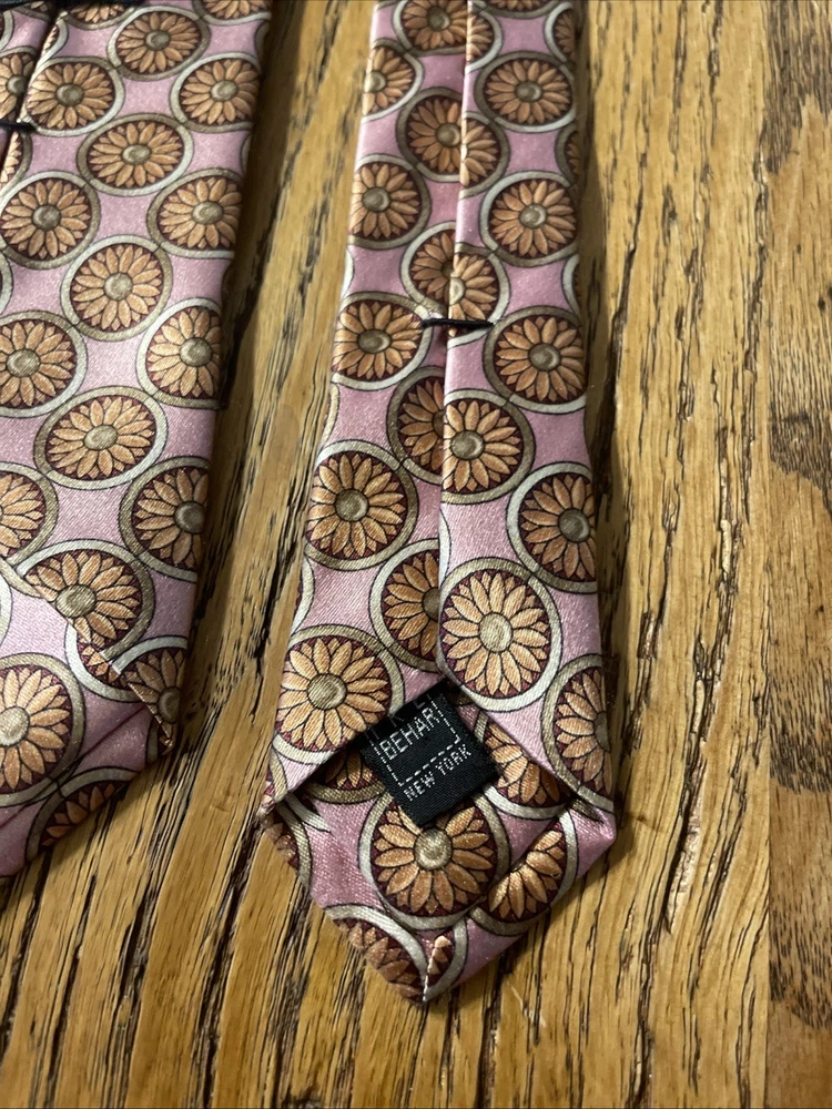 The EUC Ike Behar Thick Silk Satin Foulard Tie is a high-end designer necktie made in the USA. Hand-tailored from 100% silk with a classic width, this multicolor floral foulard tie exudes a sophisticated and stylish look perfect for formal occasions. Its quality craftsmanship and unique design make it a standout accessory for any man's wardrobe, adding a touch of elegance and power to any ensemble. Ideal for the modern gentleman looking to make a statement with their attire.