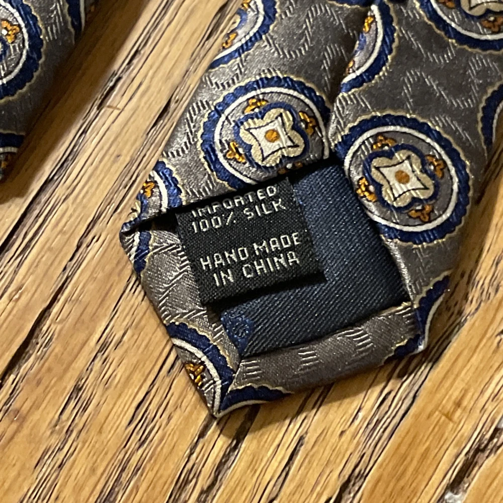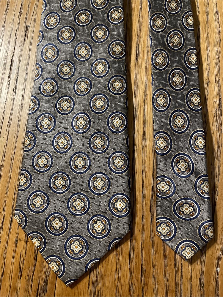 The EUC Jos. A. Bank Executive Collection Silk Medallions Tie is a high-quality designer necktie made from 100% silk satin. This classic tie features a multicolor medallion pattern, perfect for adding a touch of preppy style to any outfit. Handmade with attention to detail, this vintage piece is sure to elevate any man's formal look with its sophisticated design and excellent craftsmanship.