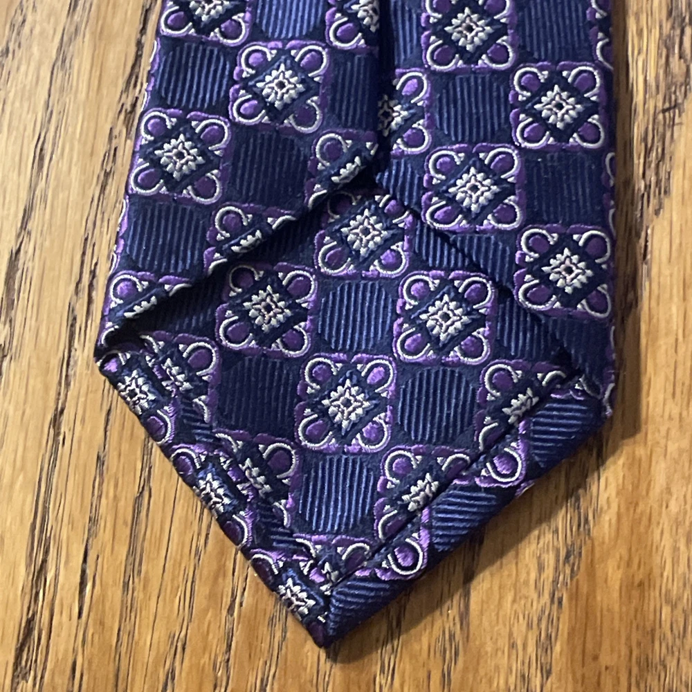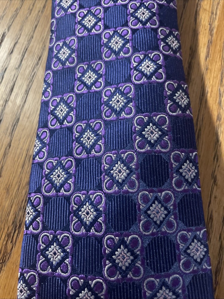The EUC Jos. A. Bank Reserve Thick Woven Silk Foulard Tie is a designer accessory for men, featuring a classic width and a preppy style. Made from 100% silk with a woven fabric type, this multicolor tie is perfect for adding a touch of sophistication to a formal outfit. The intricate Foulard pattern adds a unique and stylish element, making it a versatile piece for any occasion. With its quality construction and timeless design, this tie is a must-have for any man's wardrobe.