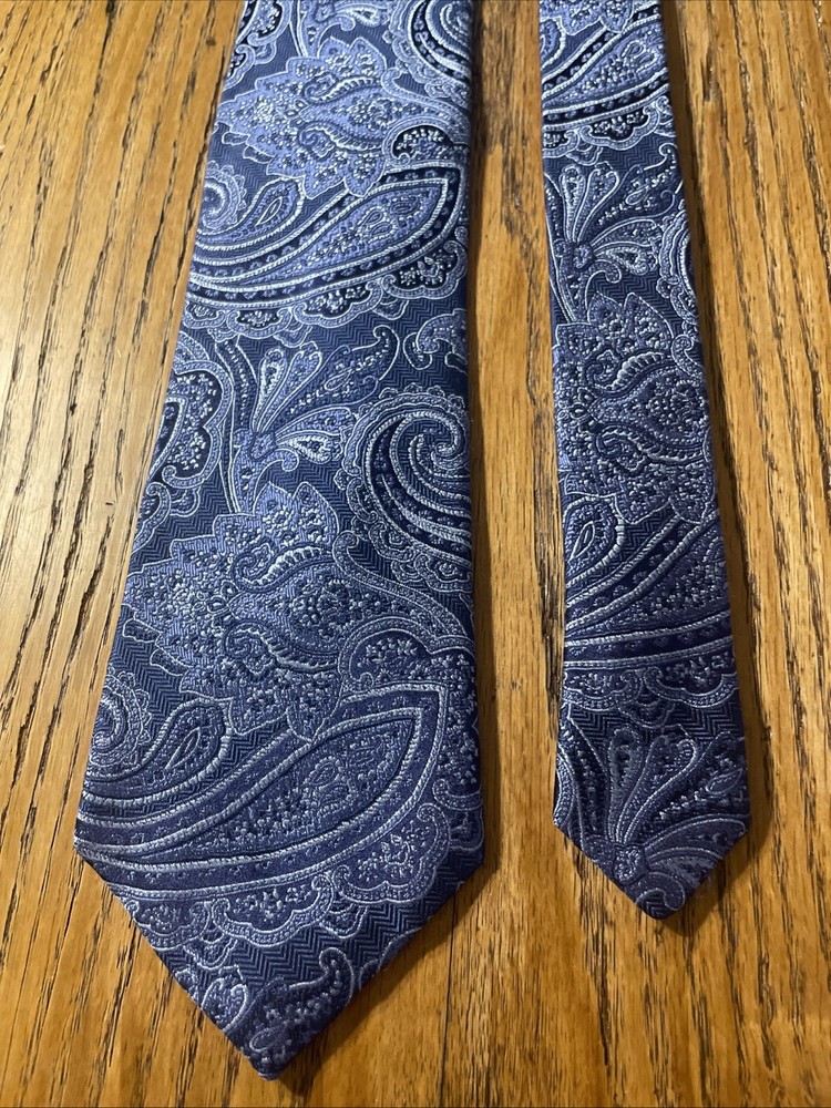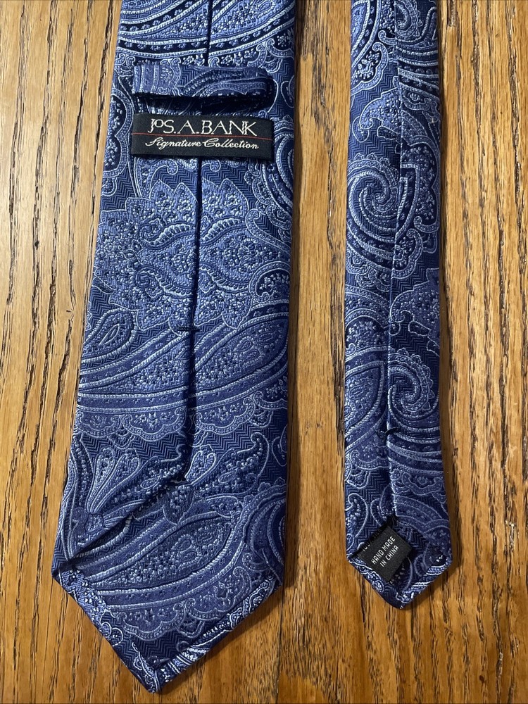 The EUC Jos. A. Bank Signature Collection Thick Silk Paisley Tie is a designer necktie for men, handcrafted from 100% silk fabric. Featuring a classic width and multicolor paisley pattern, this preppy themed accessory is woven with a high-quality finish. Perfect for adding a touch of sophistication to any formal or professional outfit, this tie is a stylish and timeless addition to any man's wardrobe.