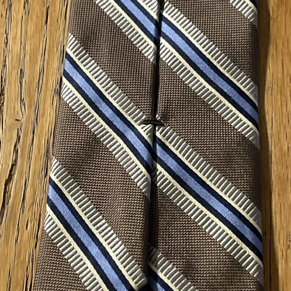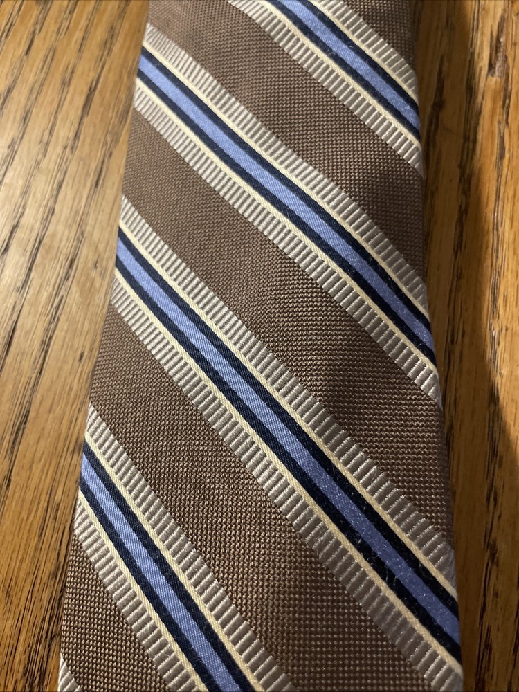 The EUC Jos. A. Bank Signature Collection Thick Silk Striped Tie is a luxurious and high-quality designer accessory for men. Made from 100% silk with a woven fabric type, this multicolor tie exudes a preppy style perfect for formal occasions. The classic width and striped pattern add a touch of sophistication to any outfit, making it a timeless choice for the discerning gentleman.