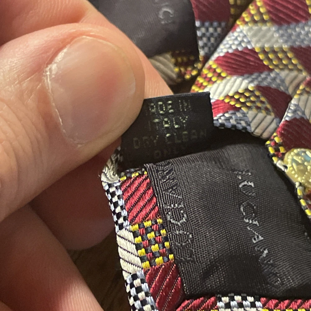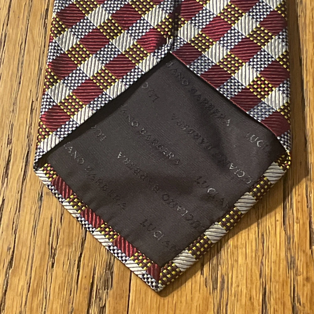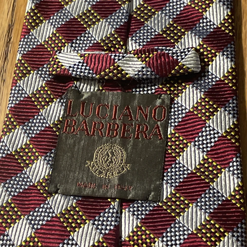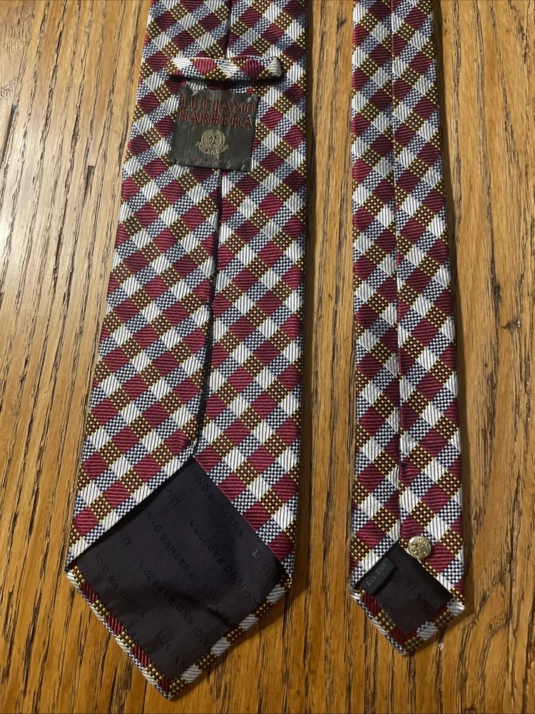 Material: 100% Silk Style: Designer Color: Multicolor Country of Origin: Italy Fabric Type: Woven Pattern: Geometric Item Width: Classic Department: Men Brand: Luciano Barbera Theme: Preppy Type: Tie