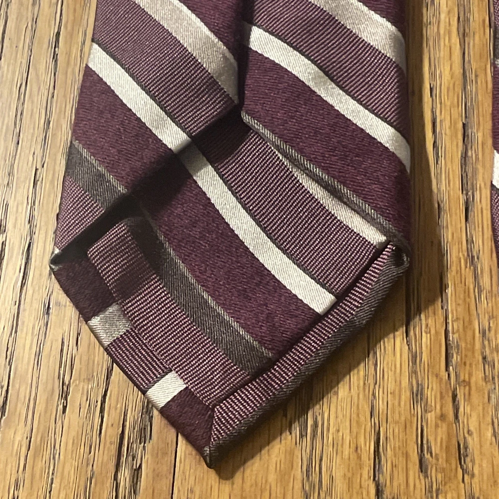 The EUC Luciano Barbera Shiny Thick Silk & Wool Striped Tie Necktie is a designer accessory for men, perfect for adding a touch of preppy style to any outfit. Made in Italy from a luxurious blend of 55% silk and 45% wool, this classic tie features a multicolor striped pattern that is both stylish and sophisticated. The high-quality woven fabric and timeless design make it a versatile option for formal events or professional settings, showcasing the craftsmanship and attention to detail that Luciano Barbera is known for.