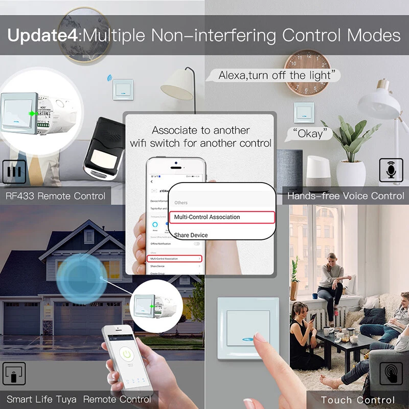 EU/UK WiFi RF433 Smart Relay Switch Module Smart APP Remote Control For Alexa