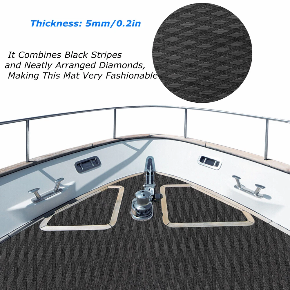 EVA Foam Boat Marine Flooring Mat Diamond Teak Decking Pad Non-slip Carpet Mat Desc ription You May Feel a Little Uneasy and Worried As Slippery When Walking on the Deck of a Ship. Look at Our Anti-skid Mat. It Is Made of High-quality Eva, Soft, Non-toxic , with Good Heat-insulation and Resilience, Providing You with a Comfortable Experience. Its Stylish Appearance Will Be a Dazzling Decoration on Your Deck. Key Features High-quality Material: High-quality Eva Is Soft, Breathable, Odorless , Non-toxic , Heat-insulating, Non-slip, Waterproof, Cold-resistant, Sunlight-resistant, Shock-resistant, Environmentally Friendly and Biodegradable and Not Easy to Deform to Stand the Test of Time Well. Comfortable Experience: Good Texture and 6mm Eva with Good Cushioning Will Reduce the Pressure on Your Feet and Back to Provide a Smoother Ride for Those Long Days on the Water While Effectively Protecting Your Hands and Feet from Being Burned by the Metal, Glass, and Steel in the Yacht After Exposure to the Sun, Bringing You a Comfortable Experience. Versatile Style: It Combines Black Stripes and Neatly Arranged Diamonds, Making This Mat Very Fashionable and Giving Your Boat or Surfboard an Eye-catching Decor. Effortless Cleaning: Because of the Water-proof Material, You Simply Clean It with Water or a Vacuum Cleaner to Give It a New Look. Moreover, Pressure Washing Allows It to Be Cleaned More Thoroughly. Details Thoughtful Grooves: the Groove Design Can Increase Friction for Good Anti-skid Performance, Provide Exceptional Comfort, and Is Good for Drainage. Large Size: the Large Size of This Anti-skid Mat (90.55*21.65 Inches) Can Cover the Big Surface of the Ship to Meet Your Needs. Strong Adhesive: It Can Firmly Stick to the Ground and Facilitate Your Installation Without Falling off. Application It Is Suitable for Boat Decking, Fish Boats, Kayak Decking, Yachts, Surfboards, Sup Paddle Boards, Skimboards, Rv Flooring, Stairs, Pontoons, Skateboards, Canoes, Garden Flooring, Swimming Pool Flooring, Etc. How to Install Please Wipe the Floor with Acetone or Alcohol (to Remove Wax or Dust on the Floor Surface), and It Can Be Installed When Dry. Please Place This Mat on the Floor and Fix It in Place with a Marker or Masking Paper(Not Included). Please Confirm the Accurate Installation Position. After Fixing the Position, Remove the Double-sided Adhesive from Any Corner, Fix This Point, and Wipe or Remove the Mark to Begin Installation. Installation Is Completed. Specifications Color: Black Style: Modern Shape: Rectangle Material: Eva Thickness: 5mm/0.2in Product Size: 230*55cm/90.55*21.65in Package Size: 73*15*15cm/28.74*5.9*5.9in Gross Weight: 1.8kg/3.97 Lbs Package Included 1* Anti-skid Mat Notes Please Note That This Product Does Not Support Partial Installation, It Is Recommended to Install It Completely. In some Cases, a Small Amount of Adhesive May Be Left on Very Specific Decks After Ripping off the Product. There Is a Little Color Difference in Different Directions of the Product. Please Confirm That the Direction of the Product Is the Same Before Installation. Before Installing the Mat, Please Ensure That the Floor Surface Is Clean, Not Dirty, and Free from Oil, Wax, or Damp Conditions. Please Install This Product on a Hard, Clean, and Flat Floor. Please Note That the Mat Can Be Flattened with Heavy Objects to Remove the Curling to Make the Installation Easier. If You Have Purchased 2 or More Pieces That Need to Be Spliced Together, It Is Recommended to Use Extra Glue to Splice the Two Pieces Together Before Installing. Please Allow the Slight Color Difference Caused by the Shooting Light and 1-3cm Error Due to Manual Measurement, and Make Sure You Do Not Mind Before Ordering. Payment Delivery details Terms of sales About us Contact us Payment We accept ebay payment 。 Fees such as import duties, taxes are not included in the item price or shipping costs. These charges are the buyer's responsibility. Delivery details Shipping: 2-9 working days to: USA Terms of sales We maintain high standards of excellence and strive for hundred percent customer satisfaction. Feedback is very important to us. We hope that you contact us immediately before you give neutral or negative feedback, so that we can address your concerns. It is impossible to address issues if we do not know about them! About us Your satis faction is our ultimate goal. We work hard to earn your trust and future business. Our certified technicians have tested each item before shipping. The unit comes with 1 year limited warranty on all manufacturing defects. a) If you receive a defective item, you may return it or ask for a discount. Please contact us within 14 days after you receive the package. b) What you returned must be intact and in its original packaging as re? u. Customer is responsible for shipping costs of the returned item. c) We will cover the cost of shipping back t with the shipping rate indicated in the registration page. We will send you a new unit or refund the full payment you paid. Thank you. Contact us Business Hour Business Hour: Monday To Friday: 8:30 AM to 5:00 PM (Beijing China time) Due to time zones, our reply to your questions may not be immediately. But within above working time, we will reply your email within 24 hours. If it's non-workdays, please kindly be patient and wait till Monday. Please contact us with ebay message. Please feel free to contact us if you have any questions. Monday To Friday: 8:30 AM to 5:00 PM (Beijing China time) Due to time zones, our reply to your questions may not be immediately. But within above working time, we will reply your email within 24 hours. If it's non-workdays, please kindly be patient and wait till Monday. Please contact us with ebay message. Please feel free to contact us if you have any questions. 2*Features Stable performance,Safe to Use 库存SKU YDFKBE9JWDZH8 Thickness 5mm Size 230*55cm Material EVA foam Length 2300mm Width 550mm Brand Unbranded Manufacturer Part N