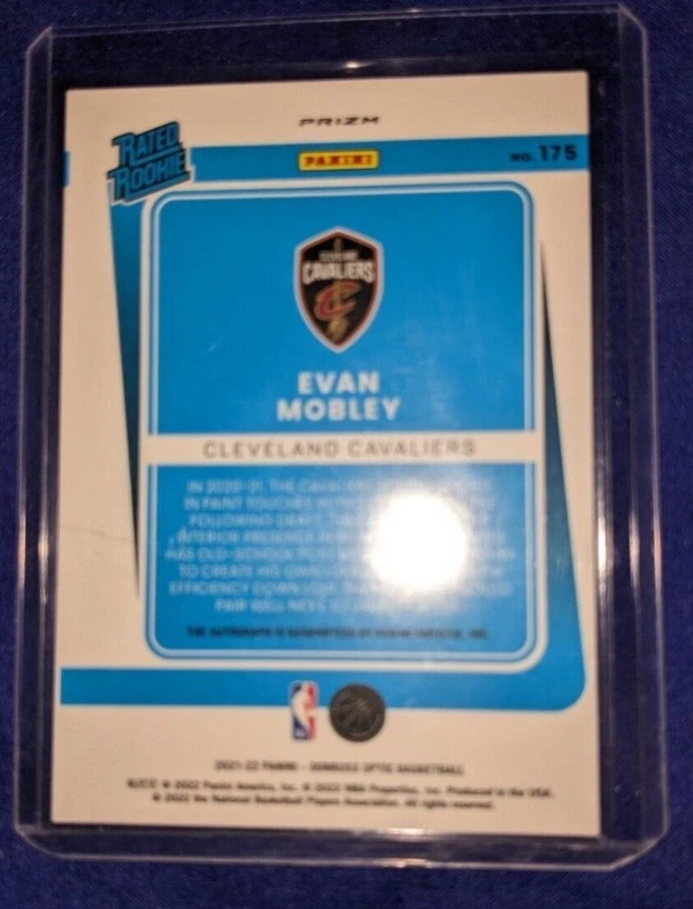 This Evan Mobley 2021-22 Panini Donruss Optic Rated Rookie Purple Autograph trading card is a must-have for any Cleveland Cavaliers fan or basketball card collector. The card features a beautiful Purple Holo Prizm design and is part of the 2021-22 Donruss set. This autographed card is a great investment for both short-term and long-term collectors. It is a rare parallel/variety that is sure to be a valuable addition to any collection. Don't miss out on the opportunity to own this amazing card.